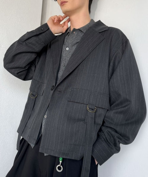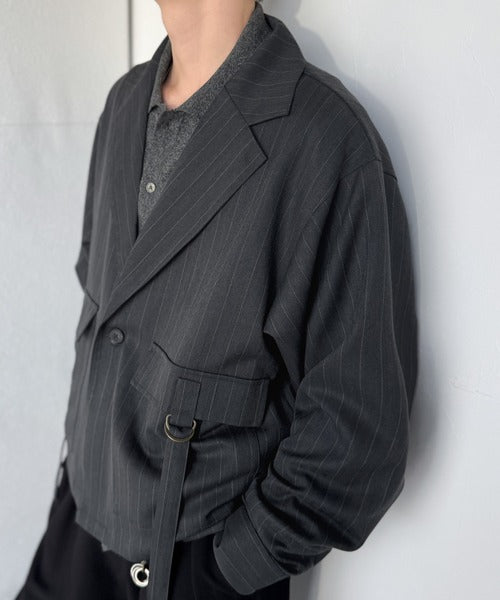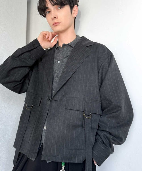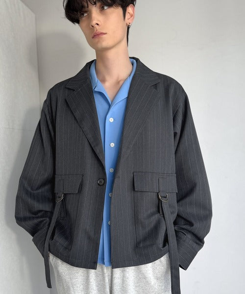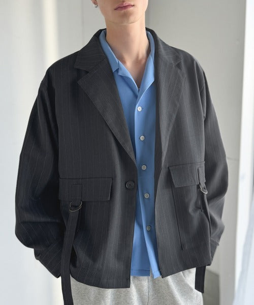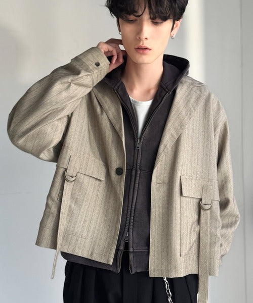 《JaVaジャバコラボ》シャツ感覚で羽織れる「軽アウター」ショート丈ポケットデザインテーラードシャツジャケット(ヘリンボーン柄ストライプ) jo1010046
