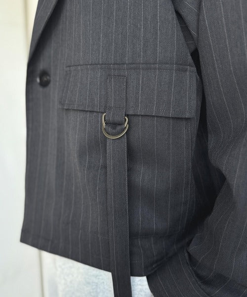 ショート丈で脚長バランス、ヘリンボーン×ストライプで清潔感。
