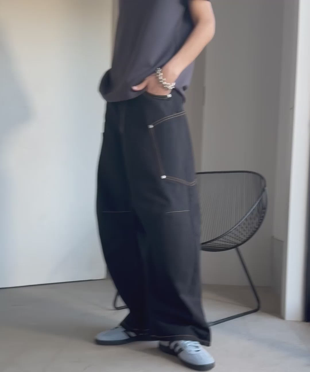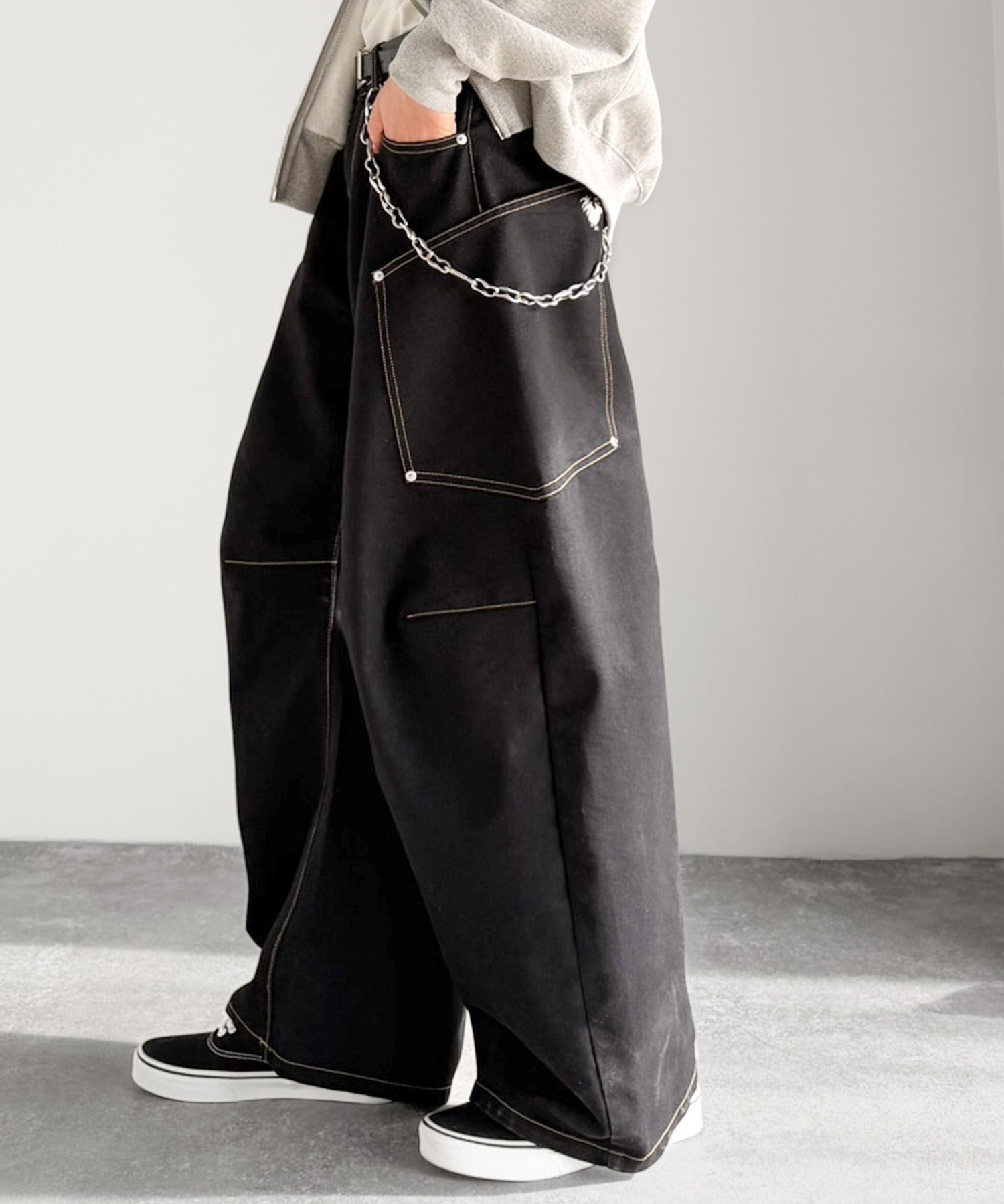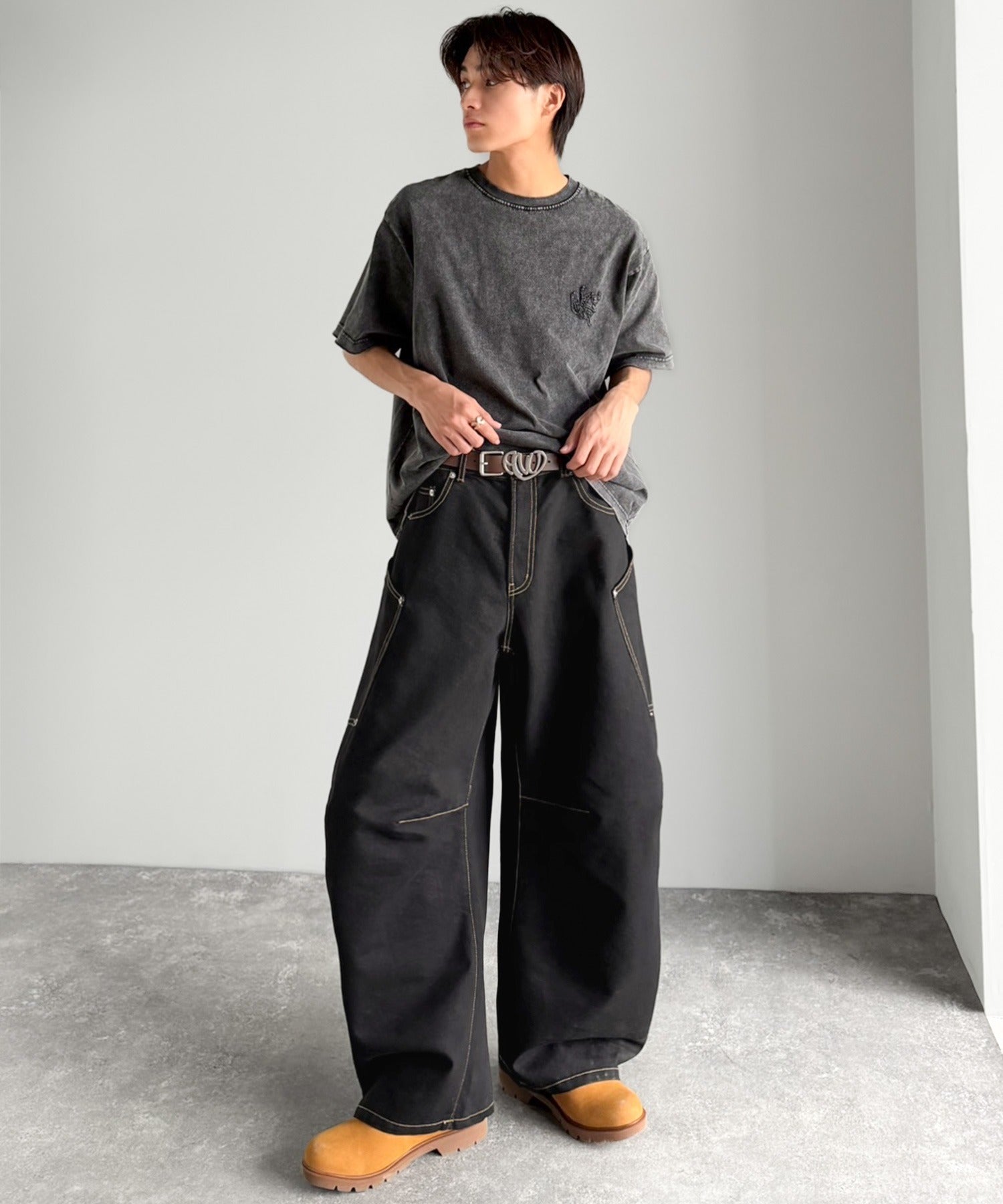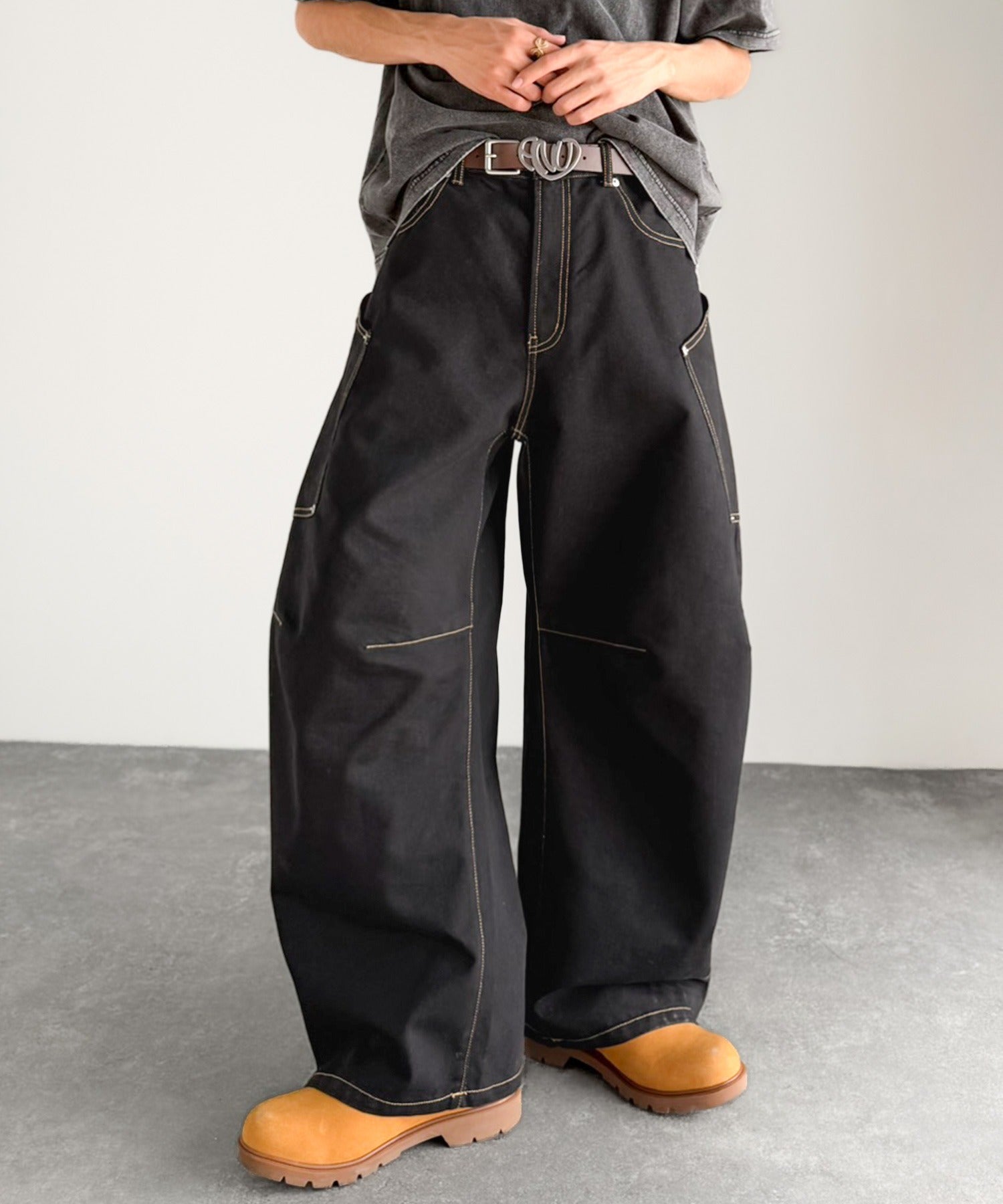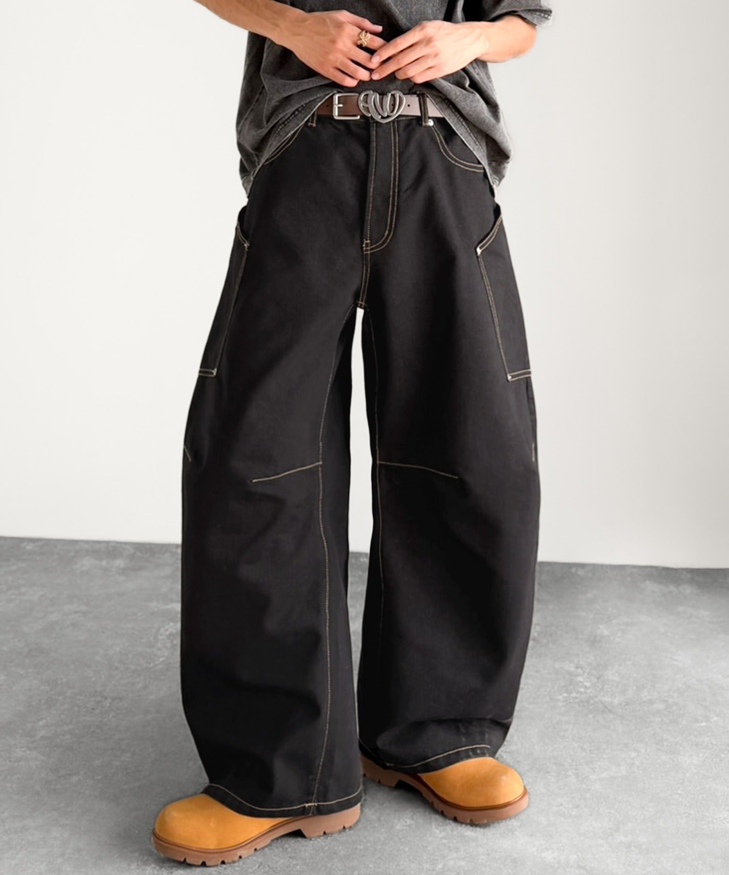10.5ozのデニムを使用したワイドバルーンカーブパンツ。