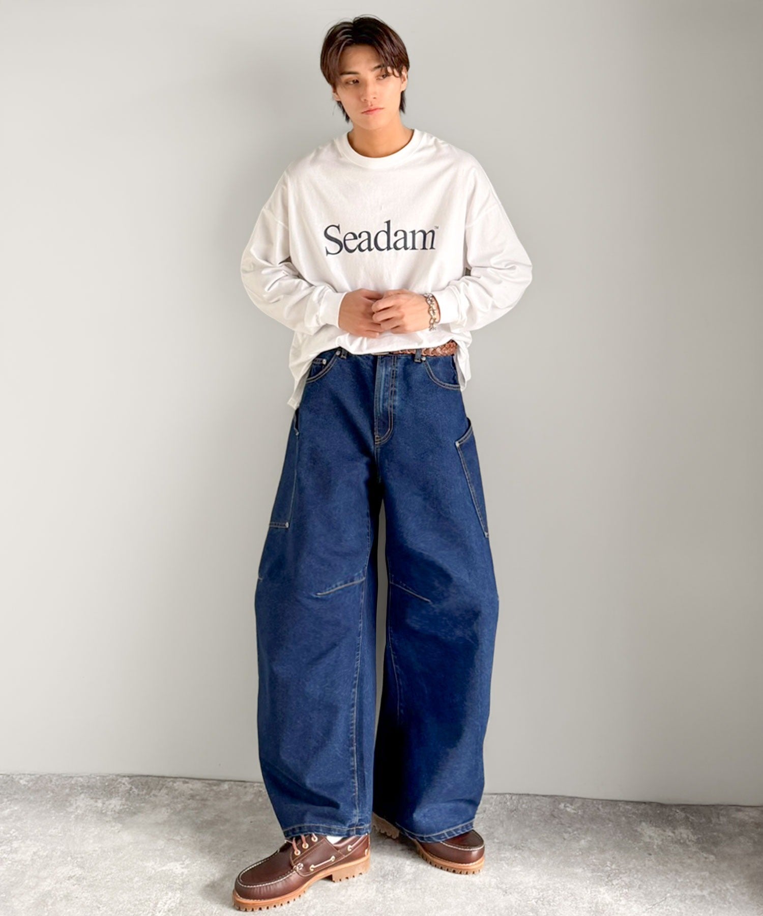 暖かい季節には、さらっとロンTやラガーシャツに合わせるだけで旬なルーズコーデに。