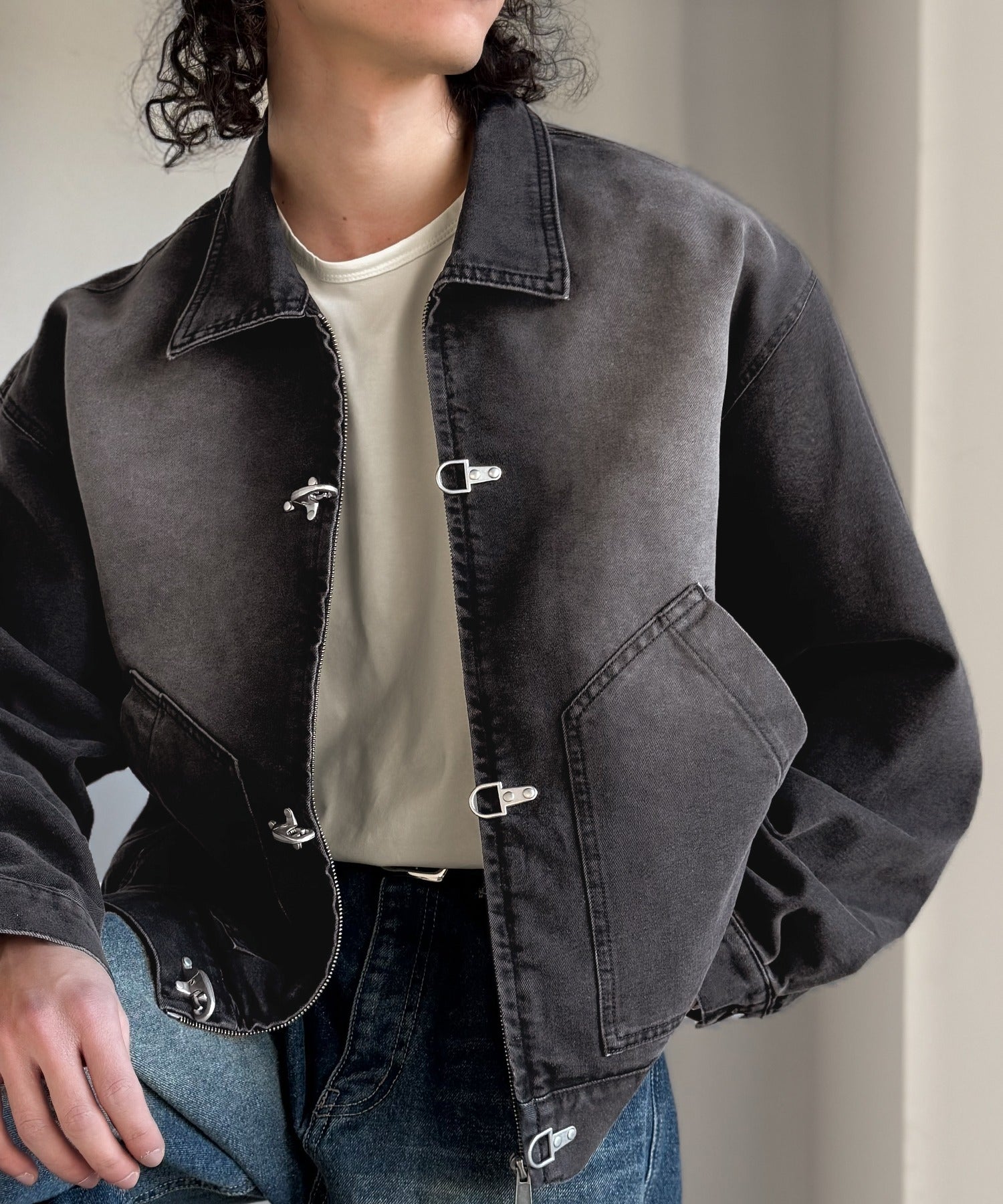 無骨さの中にデザイン性をプラスしたショート丈デニムジャケット。