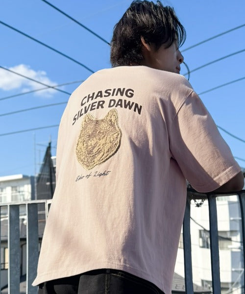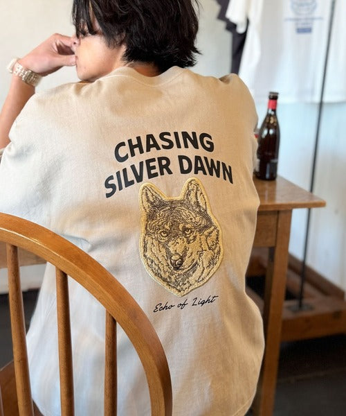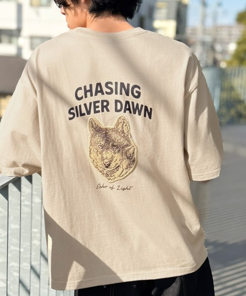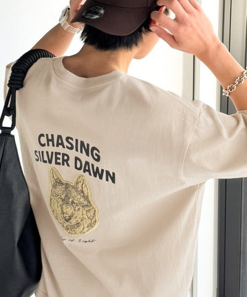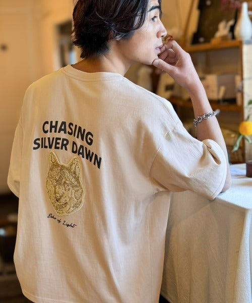 16/-天竺を使用した、サガラ刺繍が目を惹くアニマルプリントTシャツ。
