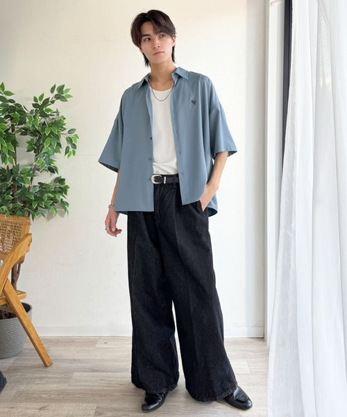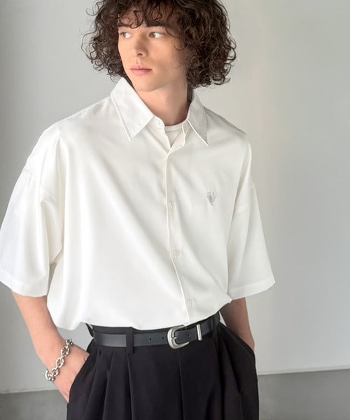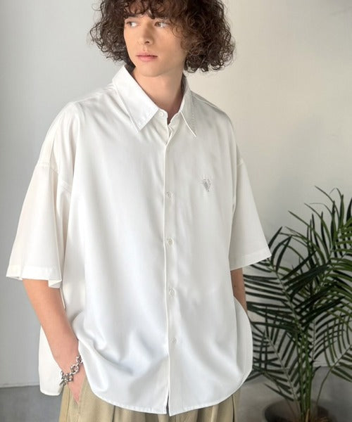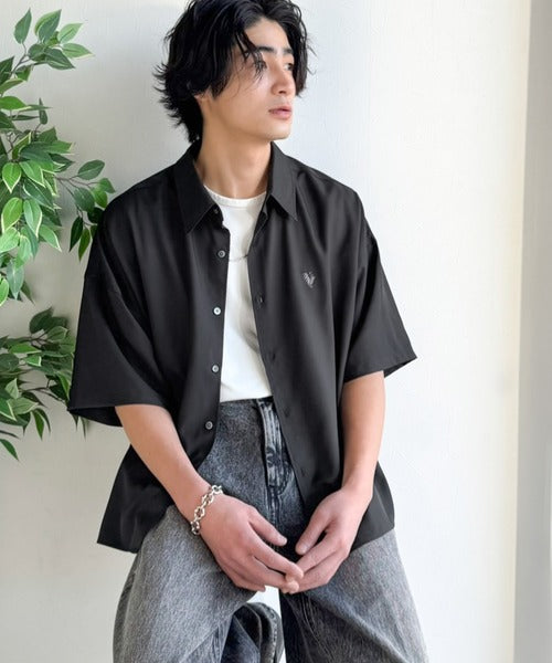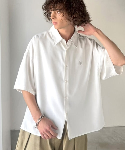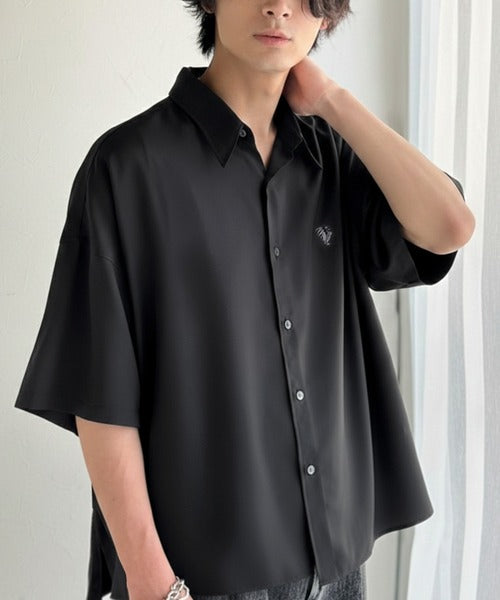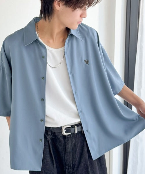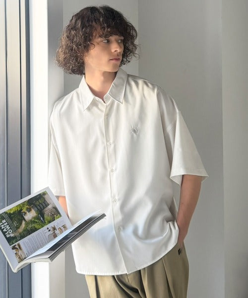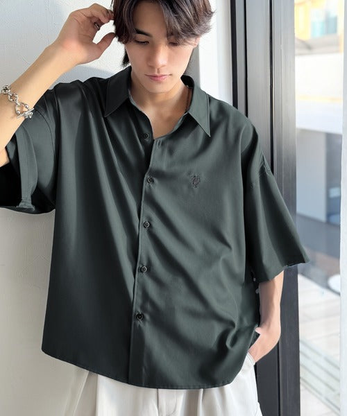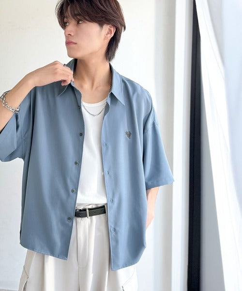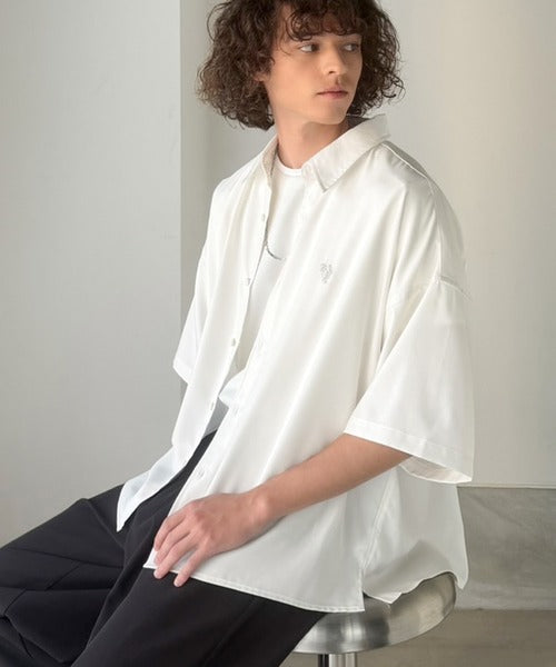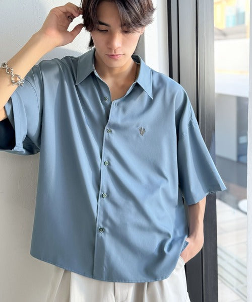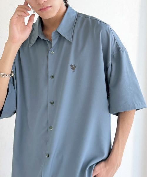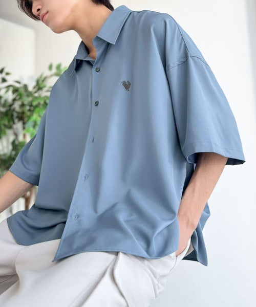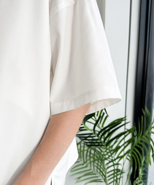 接触冷感機能を備えた、軽やかなとろみ素材のレギュラーカラーシャツ。