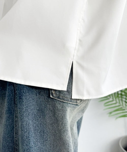 クリーンな印象を崩さない、大人のシンプルシャツ。