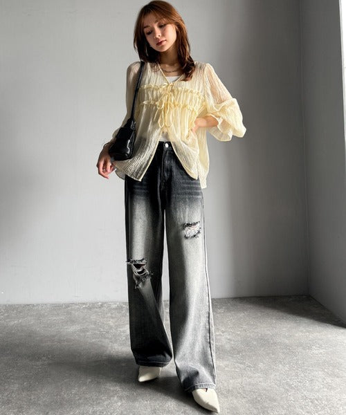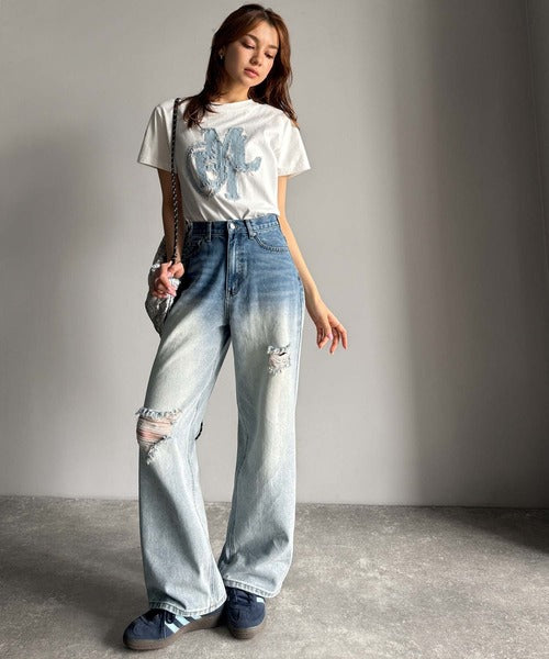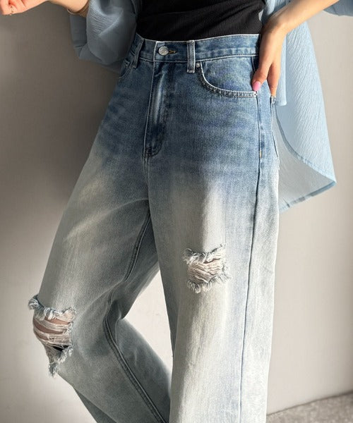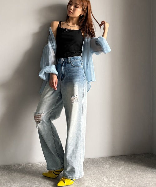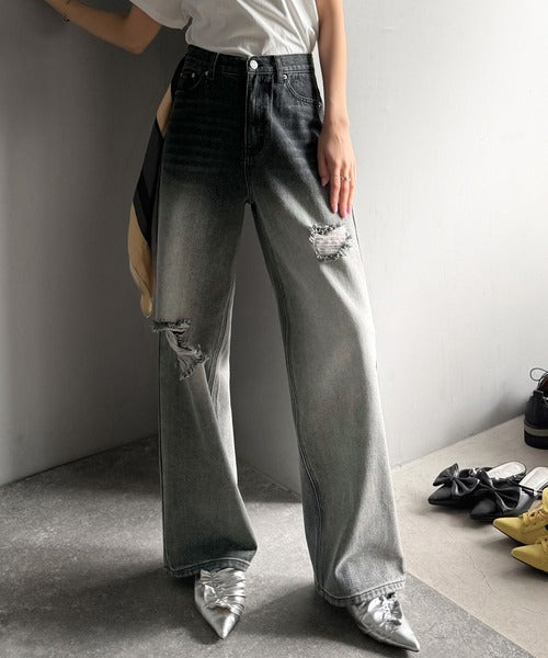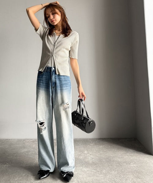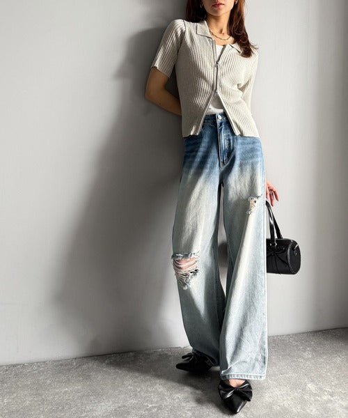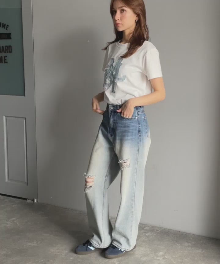 《JaVaジャバコラボ》360度こなれる、2トーンブリーチの魔法。2トーンブリーチ切り替えダメージワイドデニム jv0909007