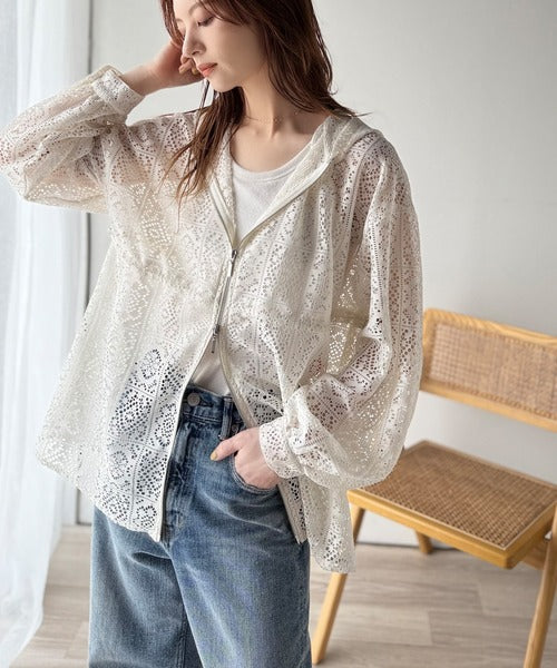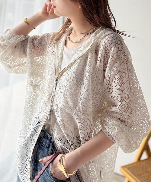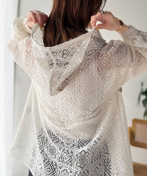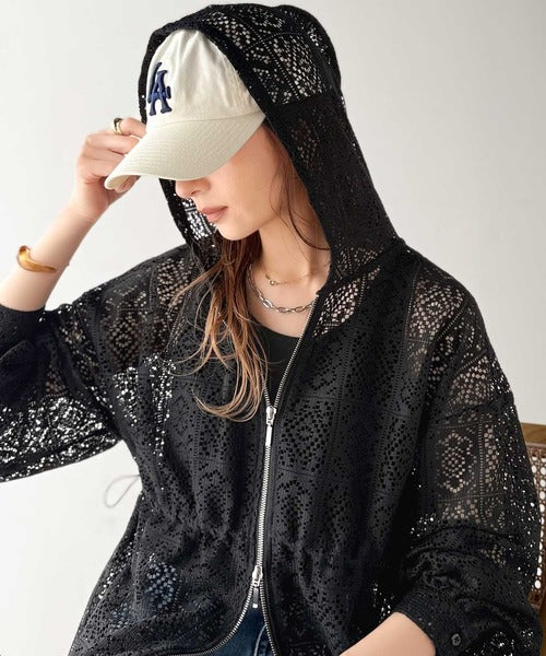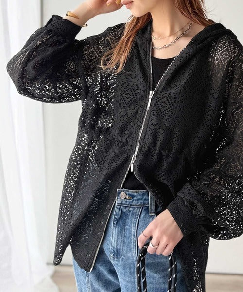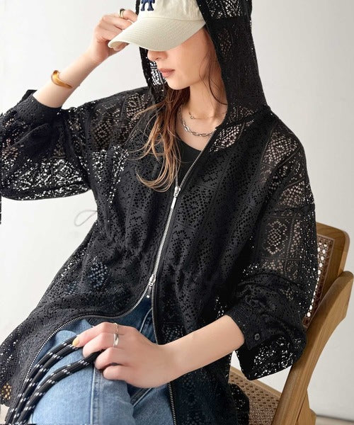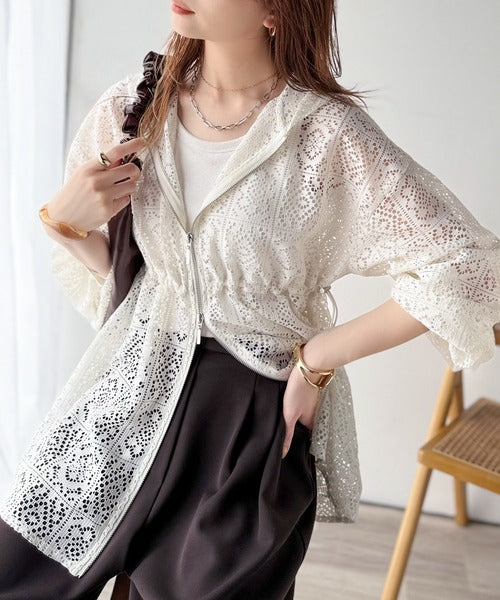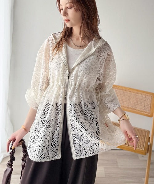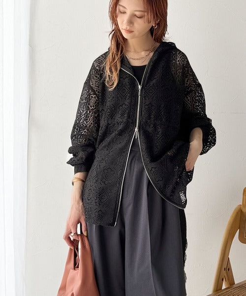 《JaVaジャバ コラボ》高級感溢れる大人の透け感。パネルレースウエストドロストパーカー(長袖) jv1010454