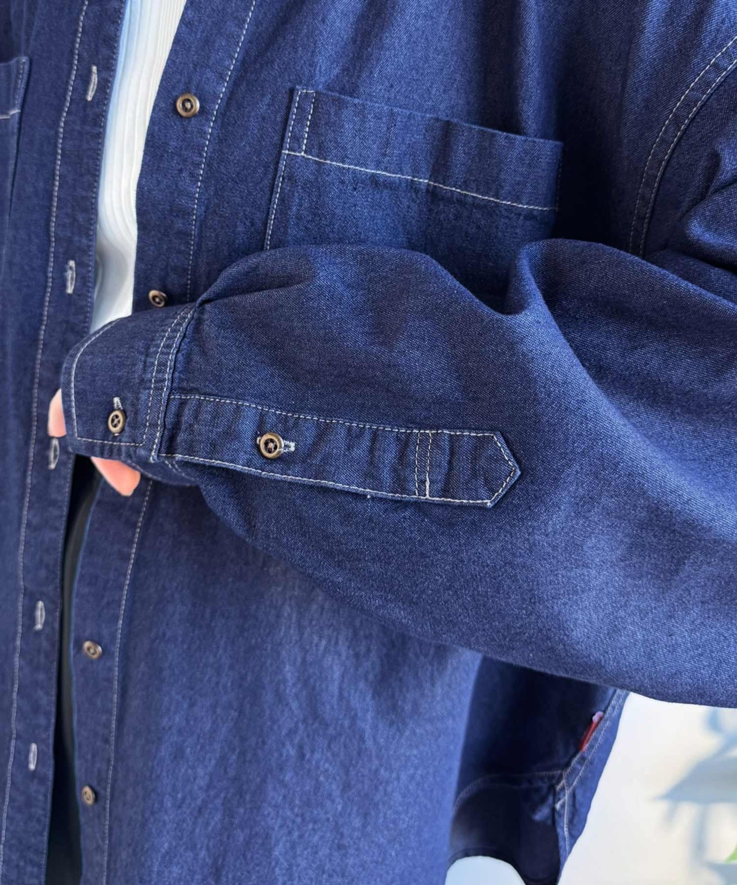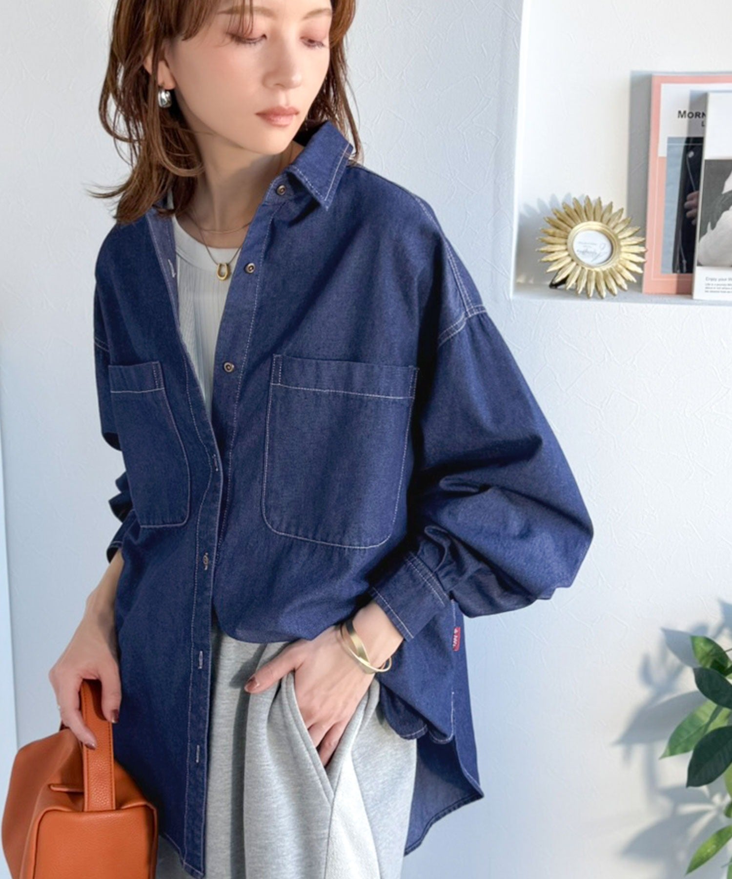 《JaVaジャバコラボ》ラフに羽織れる着回し力抜群の一枚◎綿100%ビックポケットデニムシャツ jv1010583