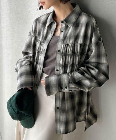 トレンドのカフタンシャツを楊柳素材で大人カジュアルに仕上げました。