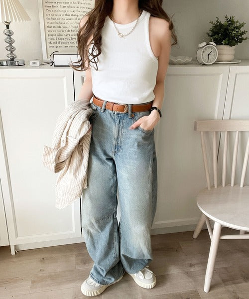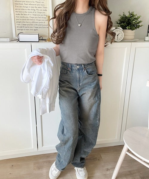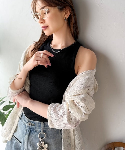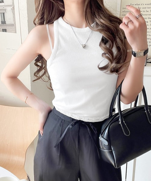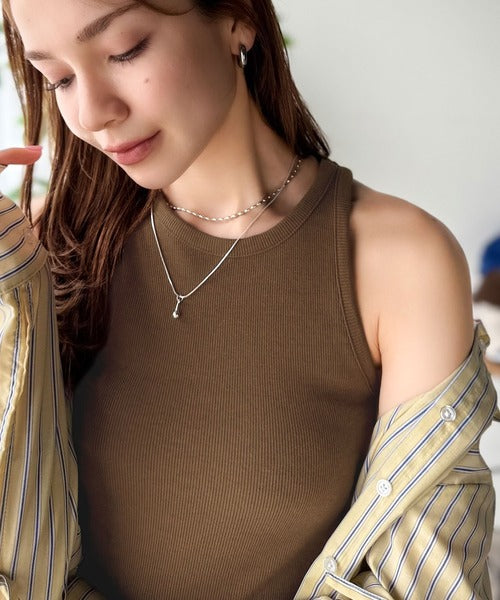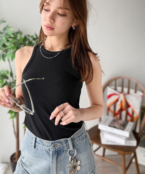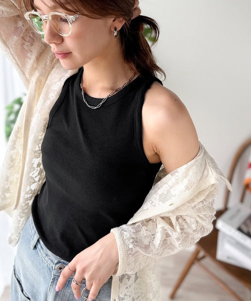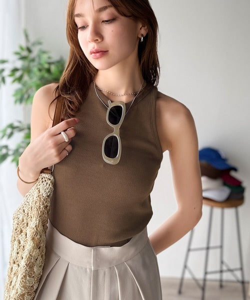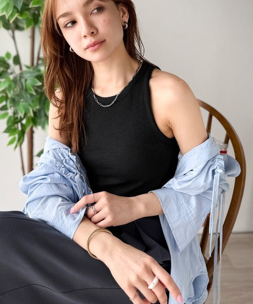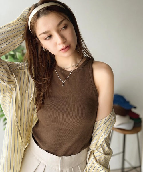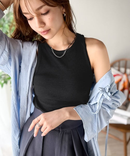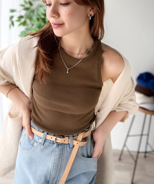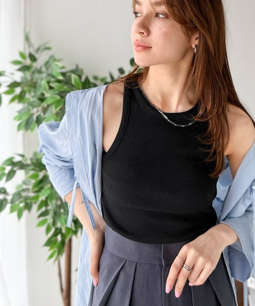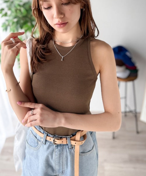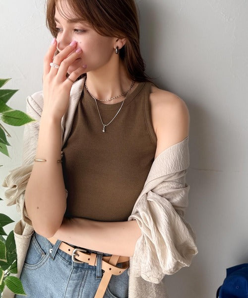 リブ素材は柔らかく、肌触りも抜群。このタンクトップ一枚で、スタイリッシュな印象を与えつつ、快適な着心地を実現しました。