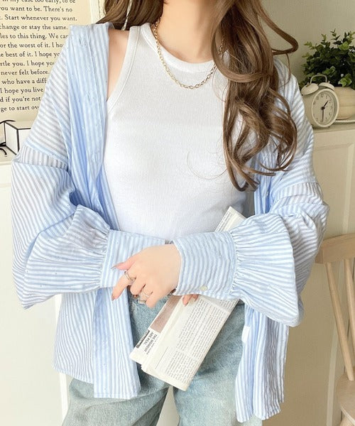 例えば、軽やかなシフォンのオープンシャツを羽織れば、ナチュラルな春夏スタイルが完成。