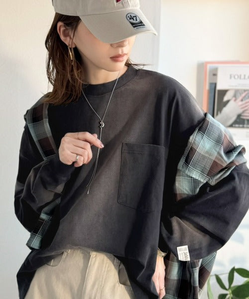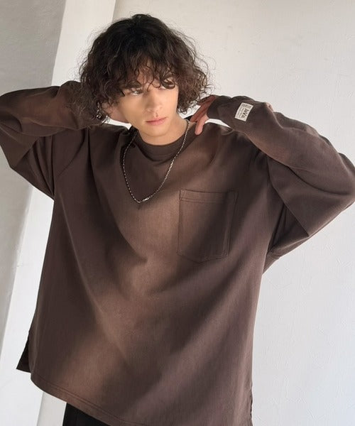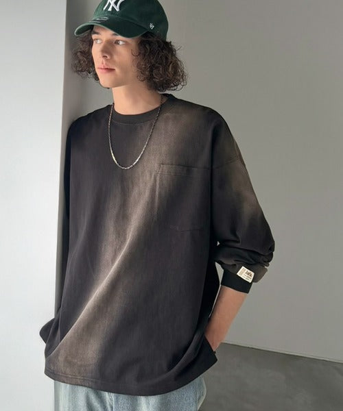 《JaVaジャバコラボ》垢抜け!大人のストリートstyleを作る。綿100%スプレーダイ加工オーバーサイズTシャツ(長袖) jv1020358
