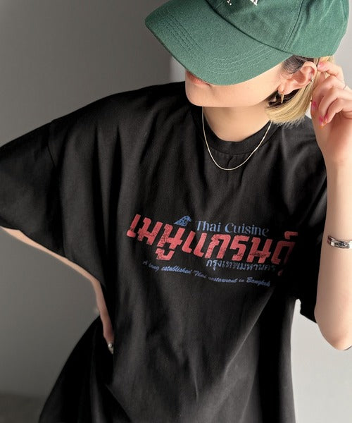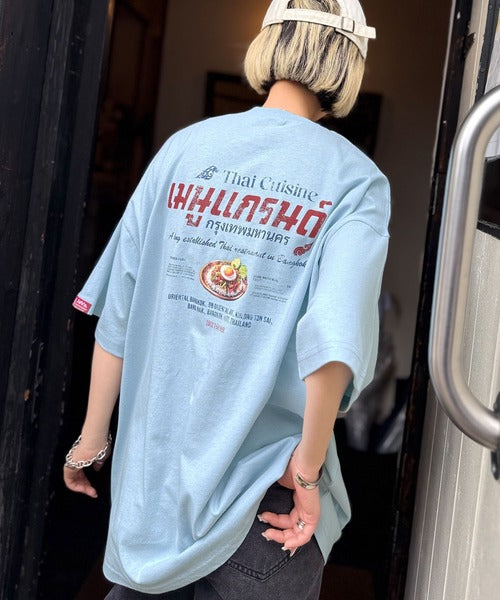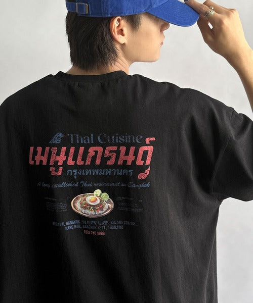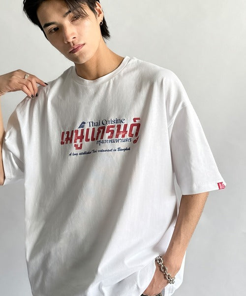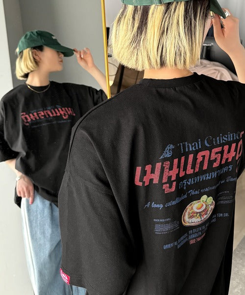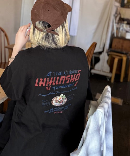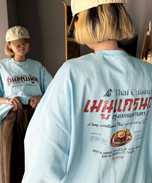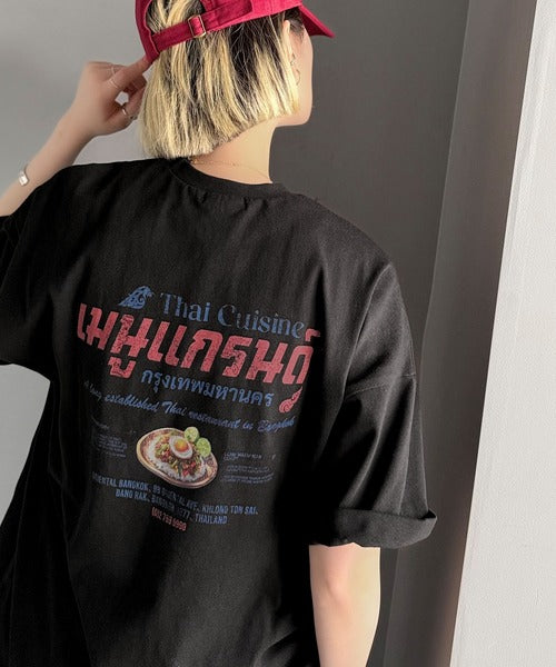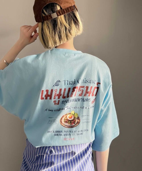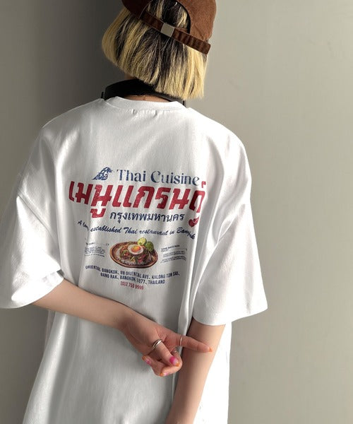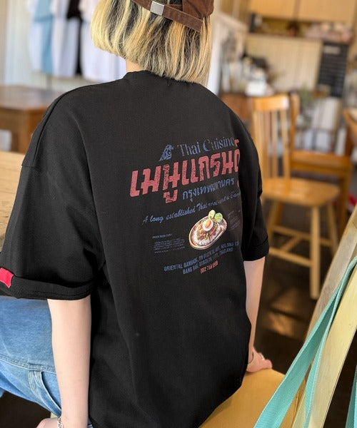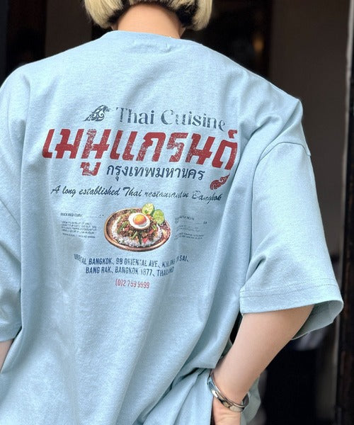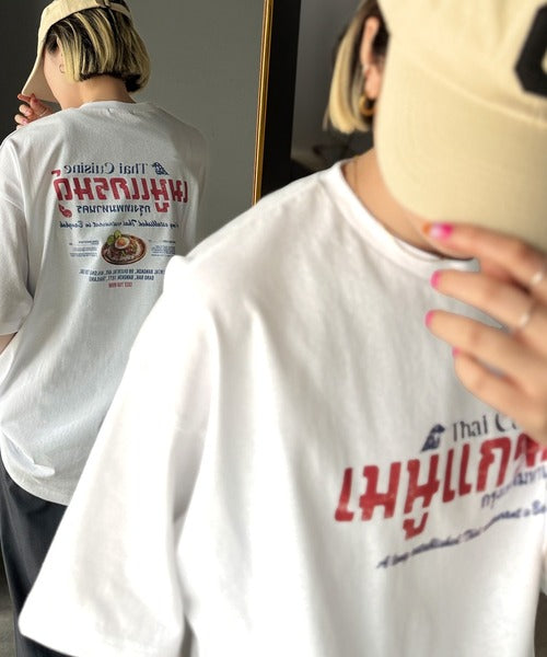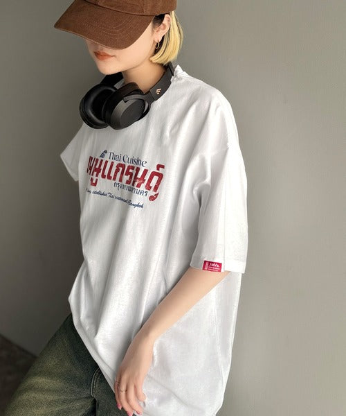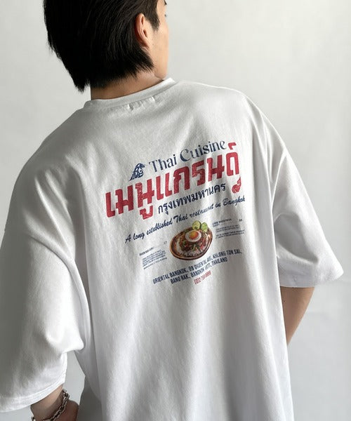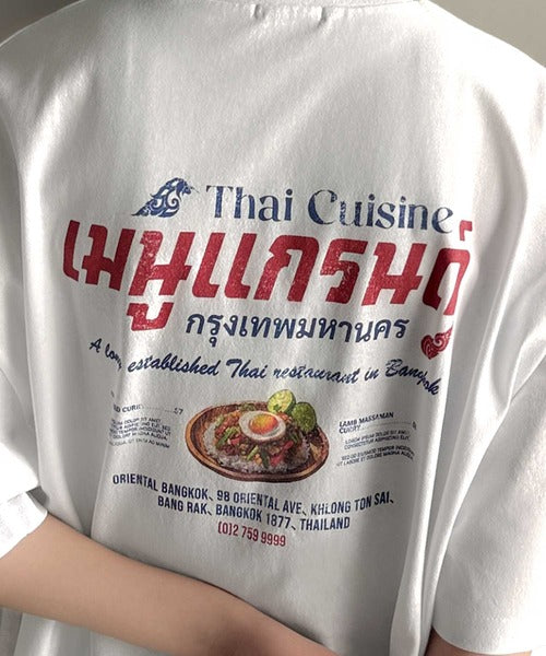 《JaVaジャバコラボ》お洒落見え確定。綿100%タイ料理メニュー風プリントルーズフィットTシャツ(オーバーサイズ) jv1029127