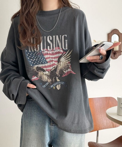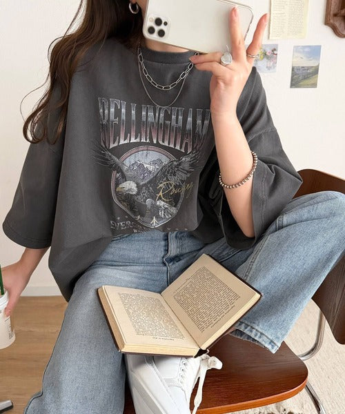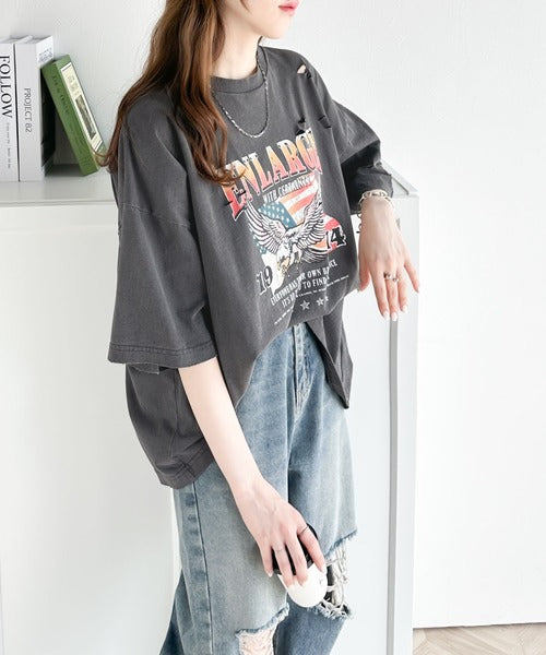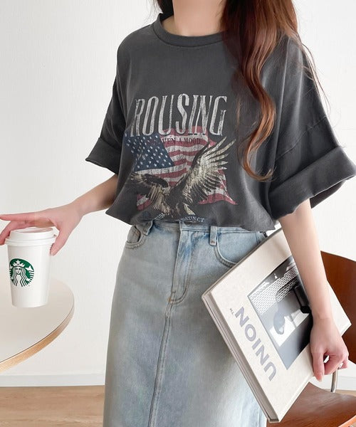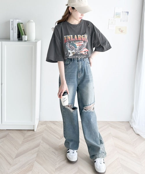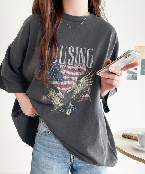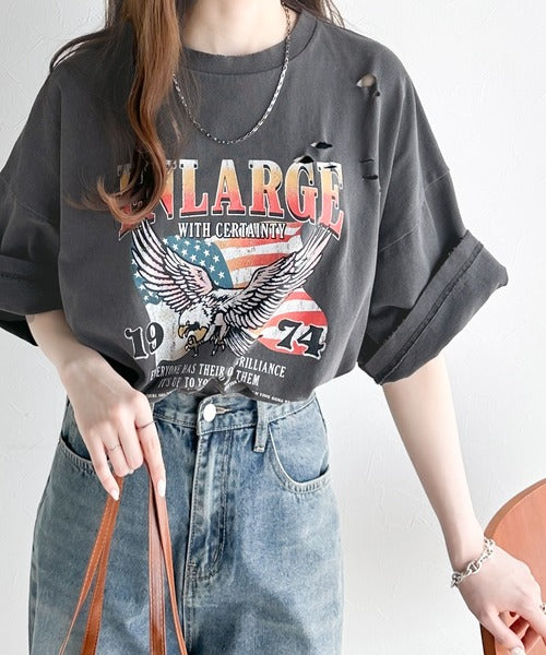 H152 M着用 カラー:G イーグル1974(半袖)※襟、袖、裾にダメージ加工が入っております。個体差がございます