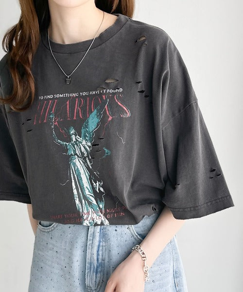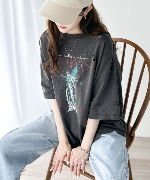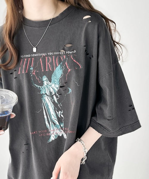 H157 M着用 カラー:F 女神:(半袖)襟、袖、裾にダメージ加工が入っており、個体差がございます。