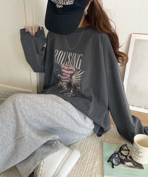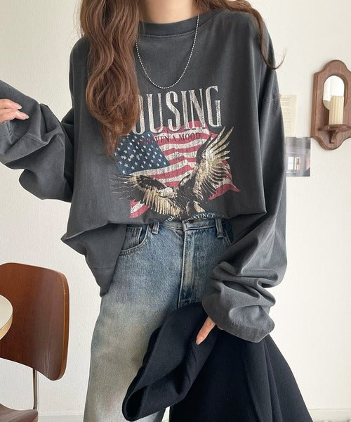 《Javaジャバコラボ》ゆるっとカジュアルに着こなす。綿100%ピグメント加工グラフィックプリントTシャツ&ロンT(半袖)(長袖) jv1050148