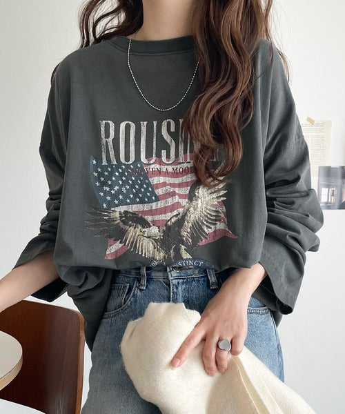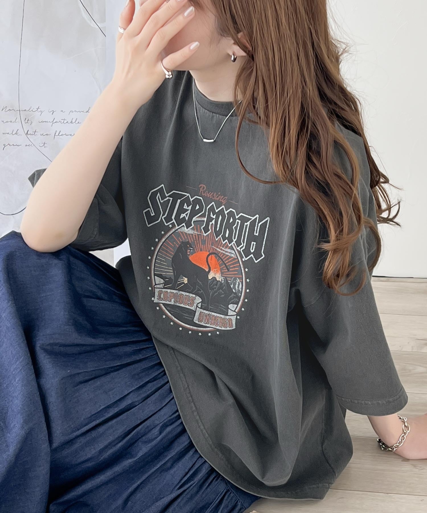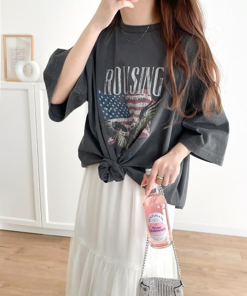 古着のロックTからインスパイアしたロゴプリントTシャツ。