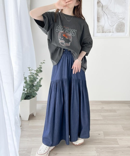 1枚ではもちろん、フリルビスチェやチュールアイテムなどの甘めアイテムと合わせれば