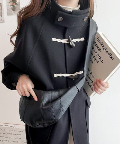 スタンドカラーでトラッドスタイルを演出する流行のダッフルコートにショート丈が登場。