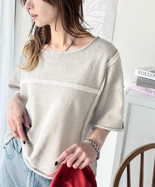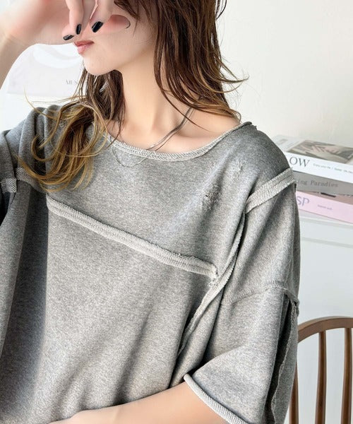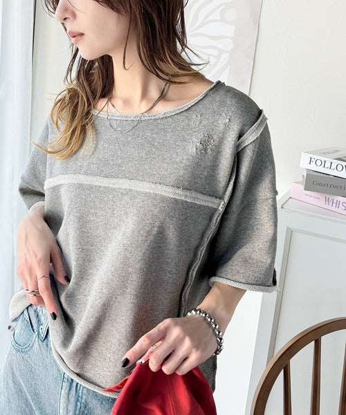 《JaVa ジャバコラボ》カジュアルコーデ の主役に。半袖ダメージ加工裏毛プルオーバー jv1260365