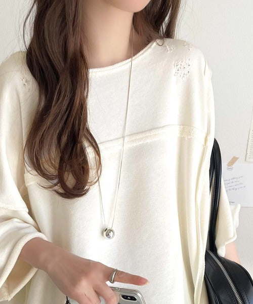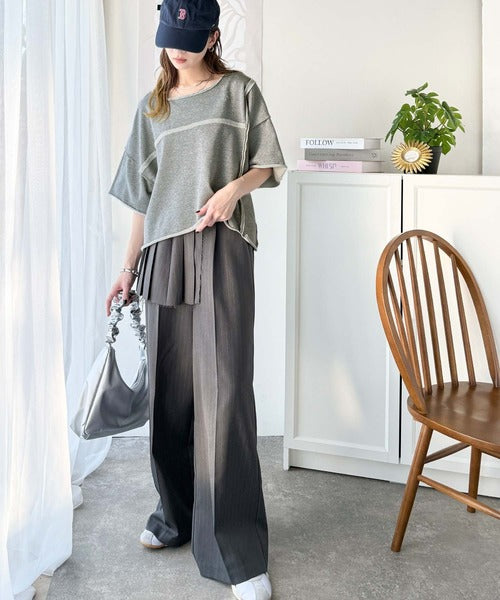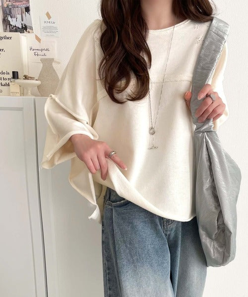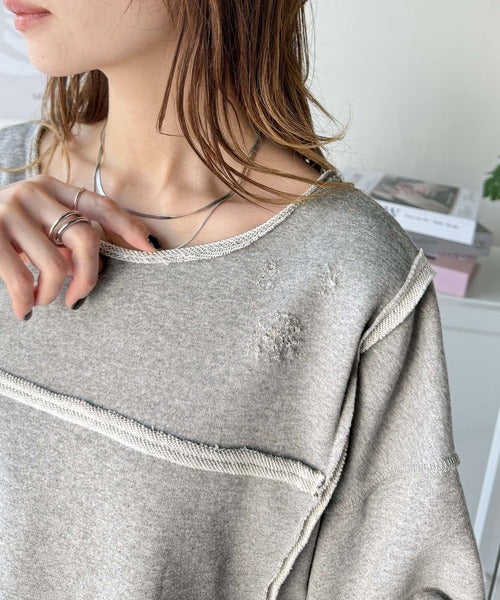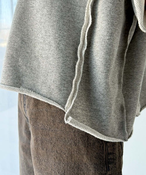 ダメージ加工と切りっぱなしデザインが今っぽい裏毛プルオーバー。程よい丈感はインでもアウトでもキマる絶妙なバランスで、大人カジュアルにキマる1枚◎