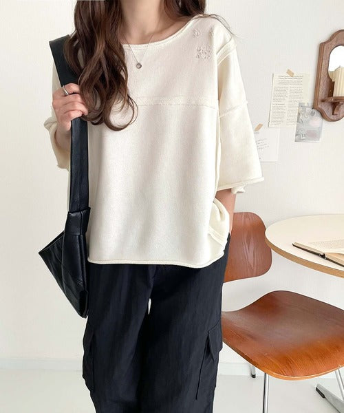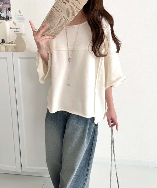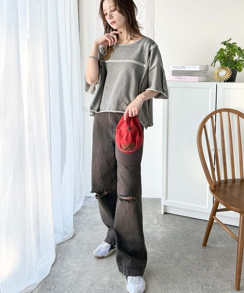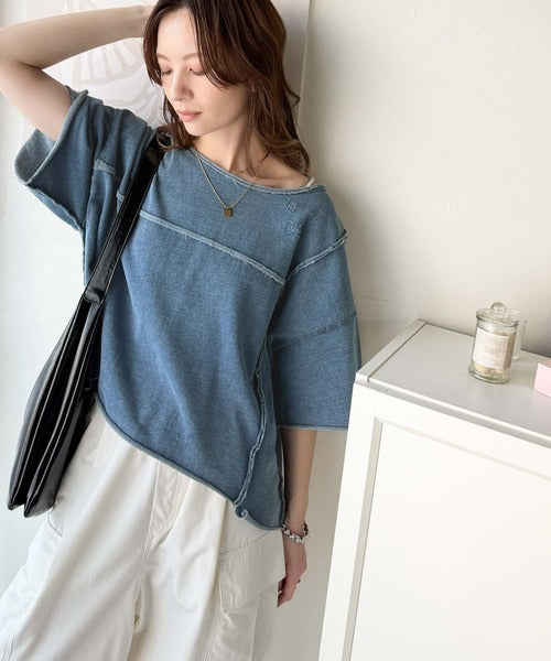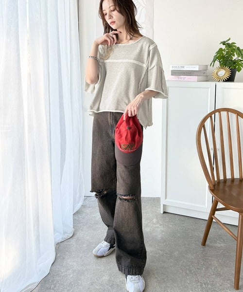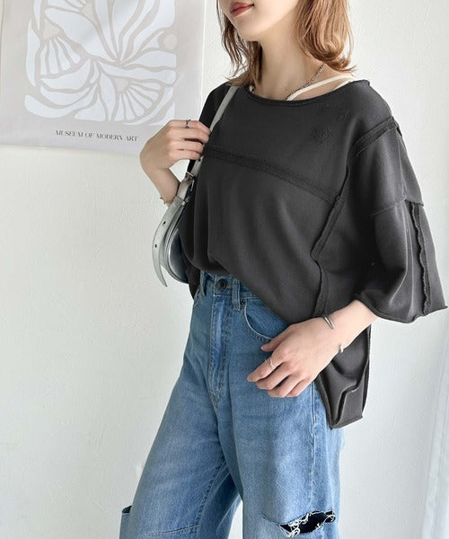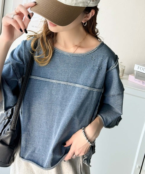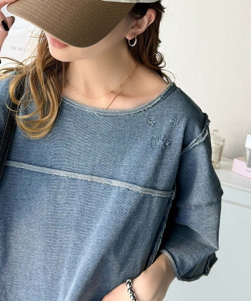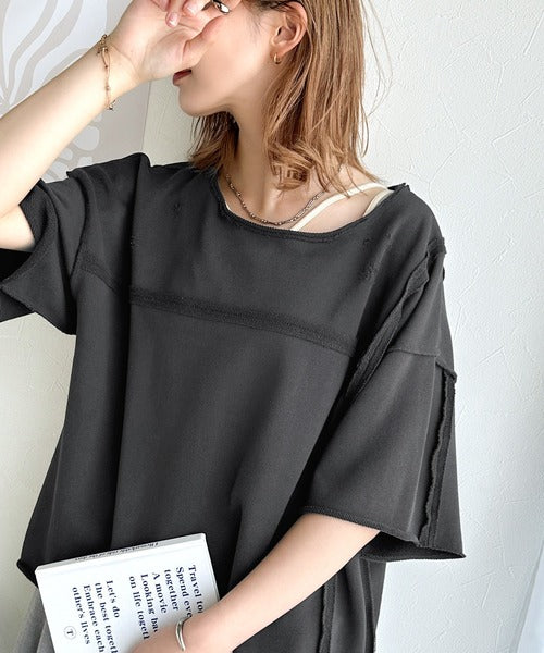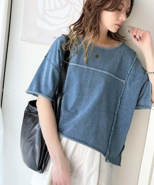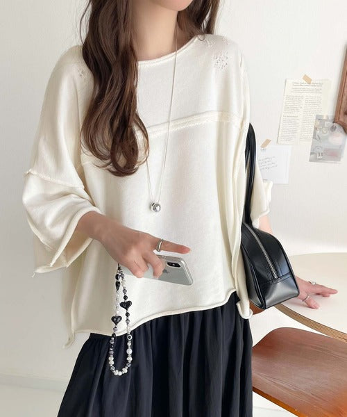 トレンドを味方に。古着のようなカットオフデザイントップス。