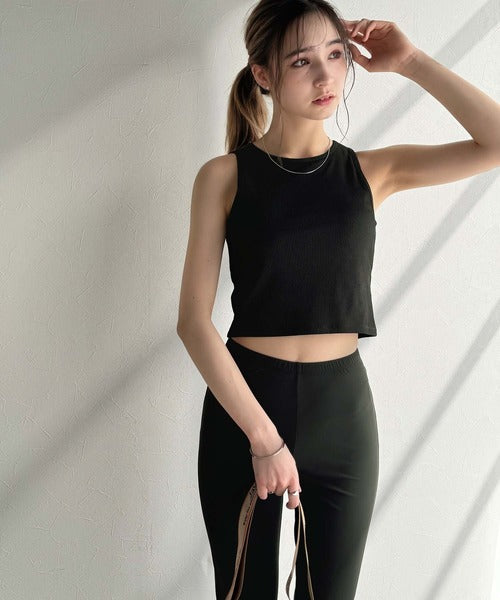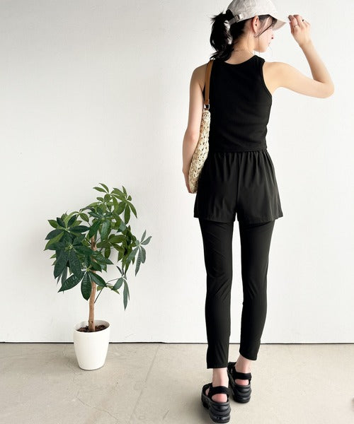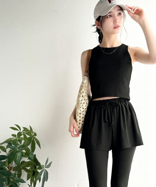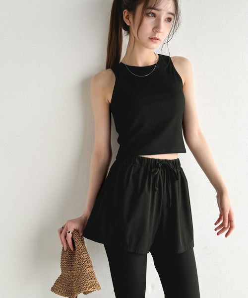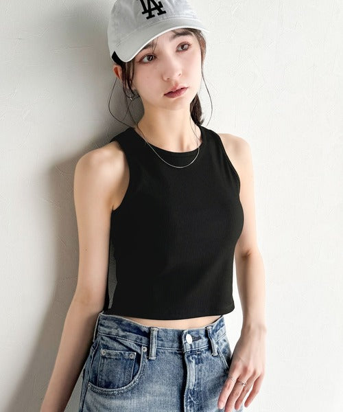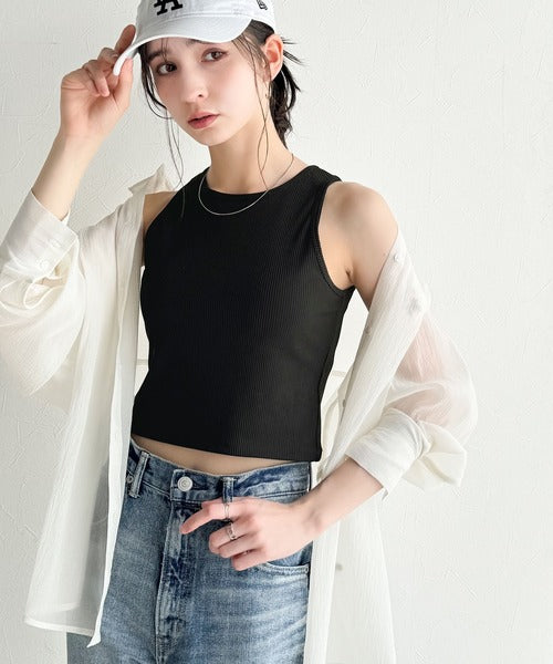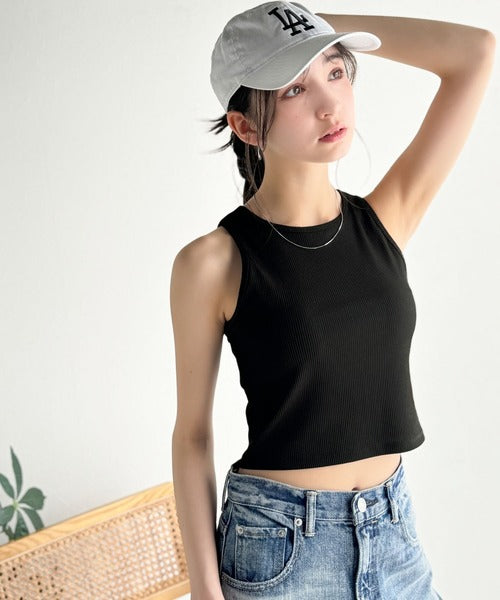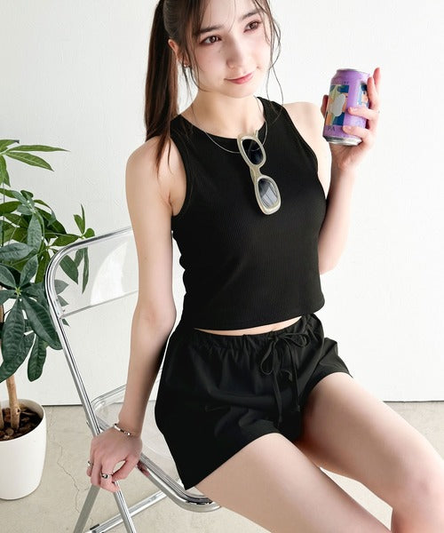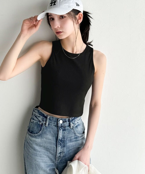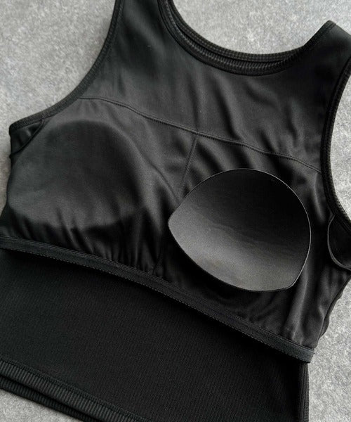 カップ付きキャミソールは、ストレッチ性に優れ速乾性のある丈夫なリブ素材を使用。