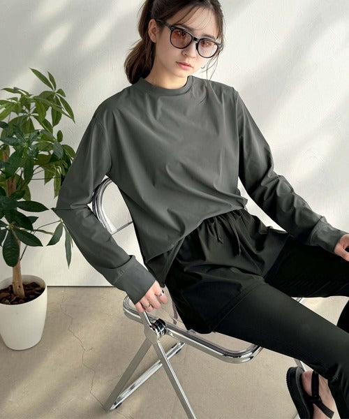 スタイリッシュなブラックやチャコールといったカラー展開は、大人っぽく華奢見え効果も◎