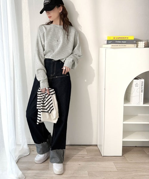 デニムやカーゴパンツと合わせればリラックス感あるカジュアルスタイルに。