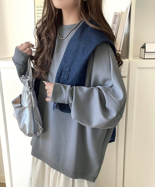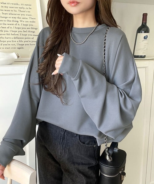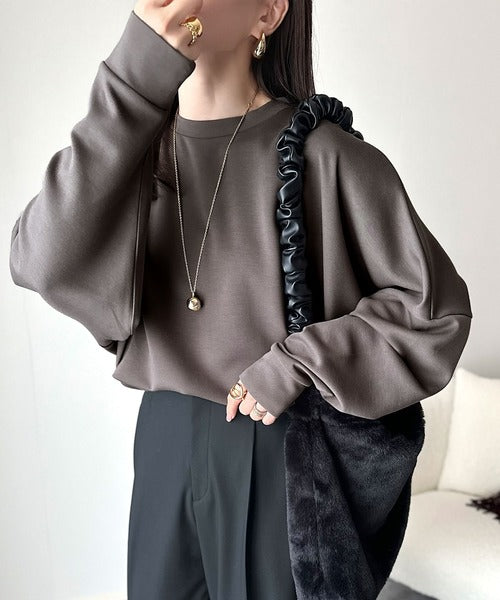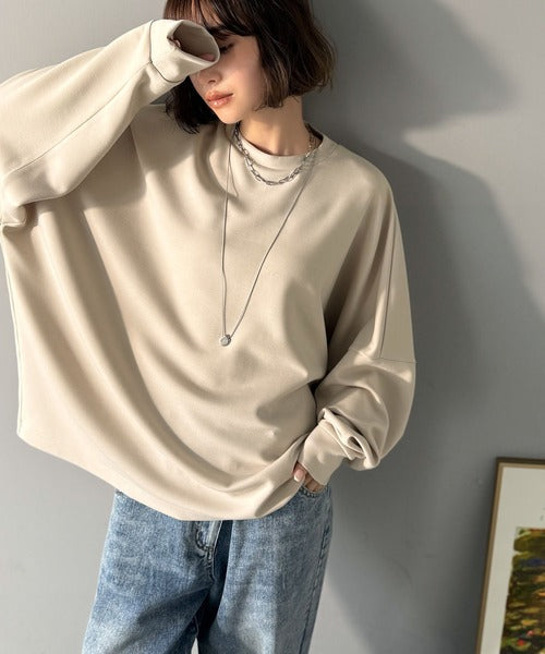 《JaVaジャバ コラボ》上品な抜け感と艶感◎ドルマンダンボール素材ビッグトレーナー(長袖) jv1260455