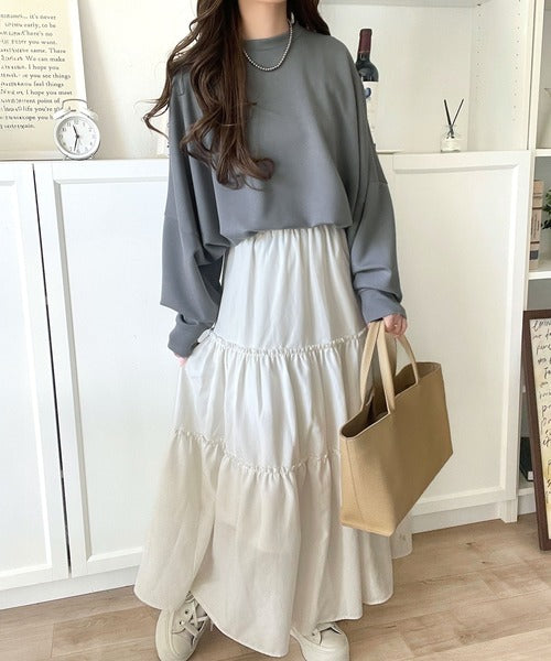 またティアードスカートやミニボトムを合わせたガーリースタイルもおすすめ♡