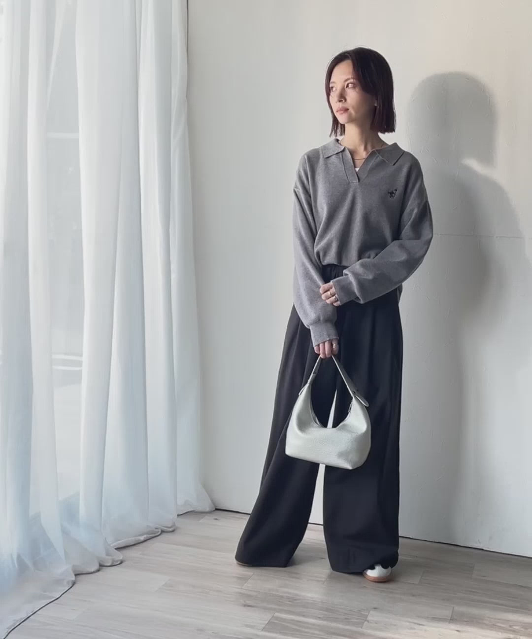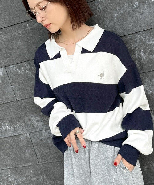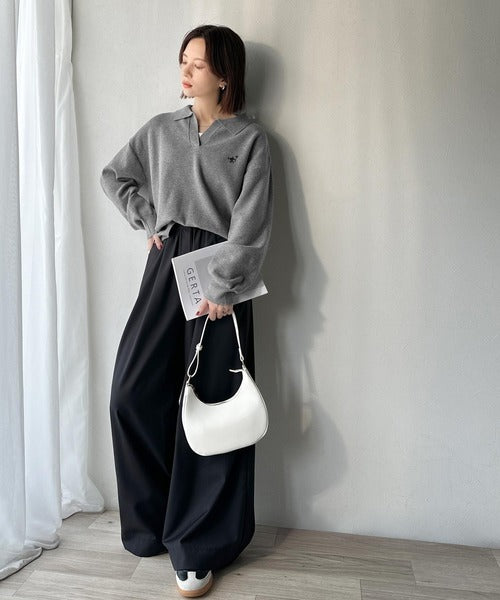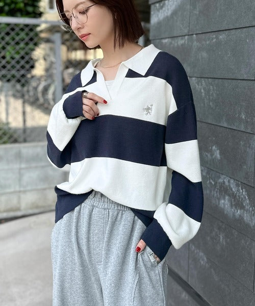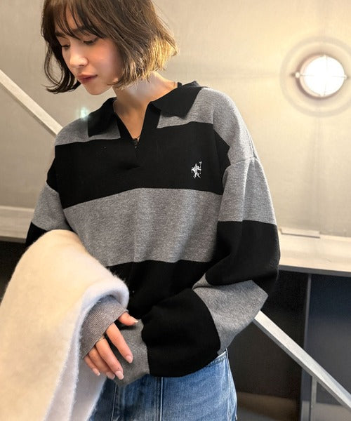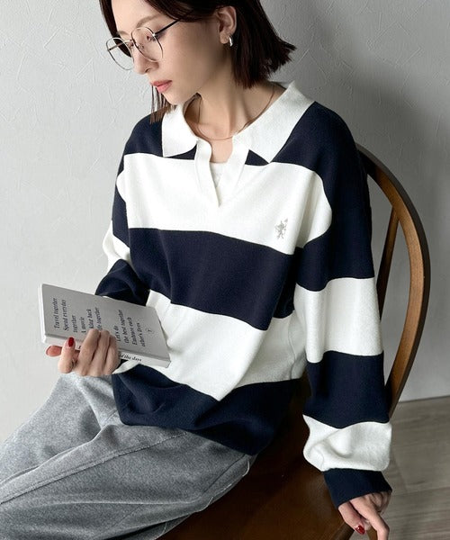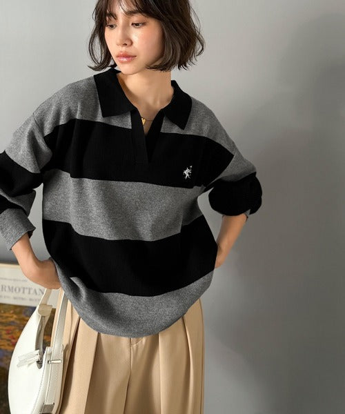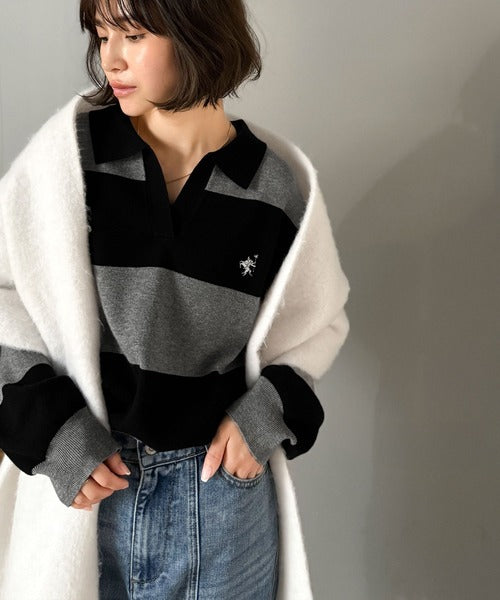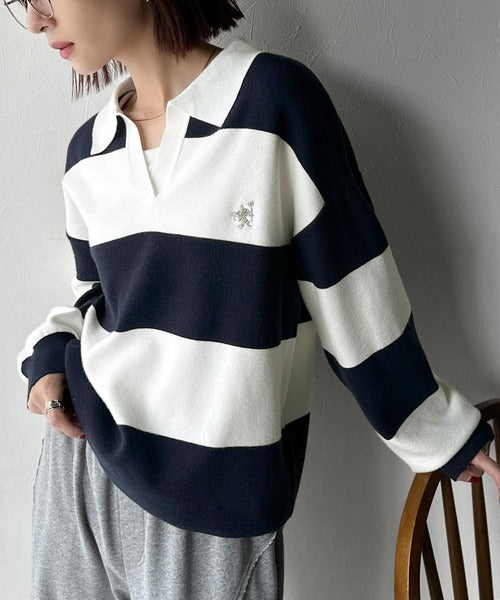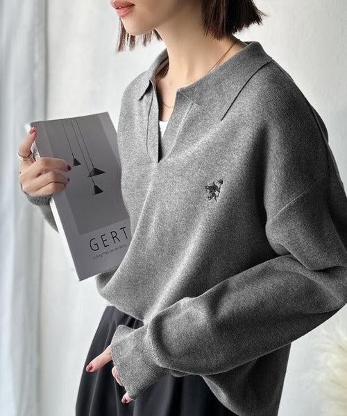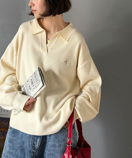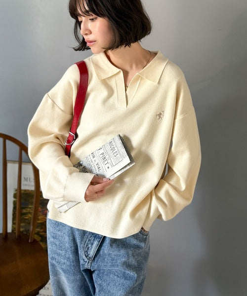 《JaVaジャバコラボ》大人の抜け感をプラス◎胸刺繍ハーフミラノスキッパーニット jv1260490