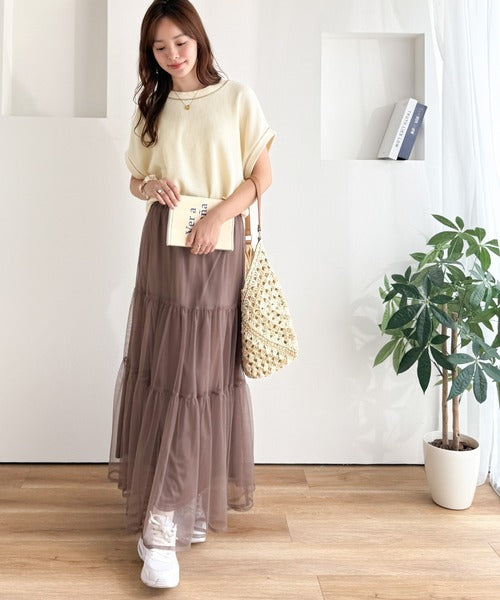 チュールスカートやキャミワンピースを合わせた甘めスタイルまで