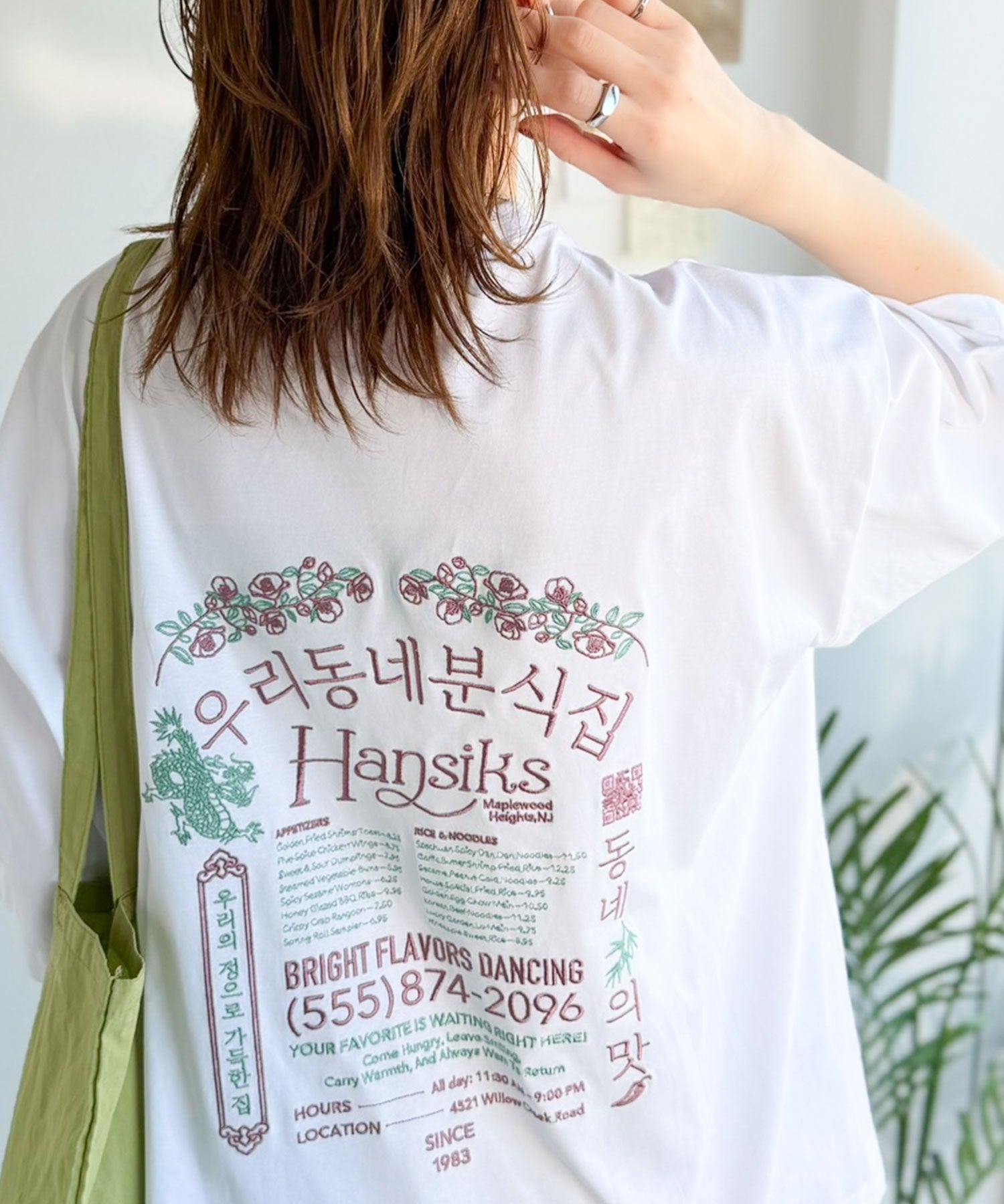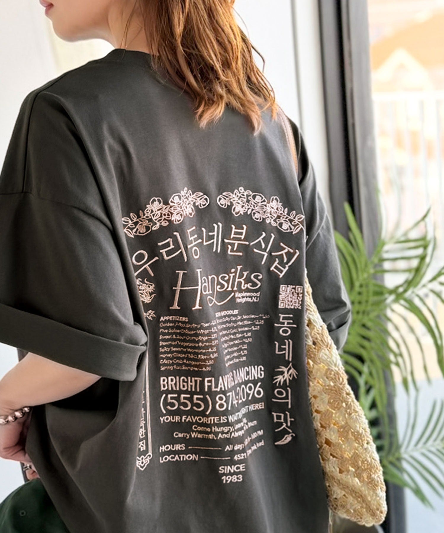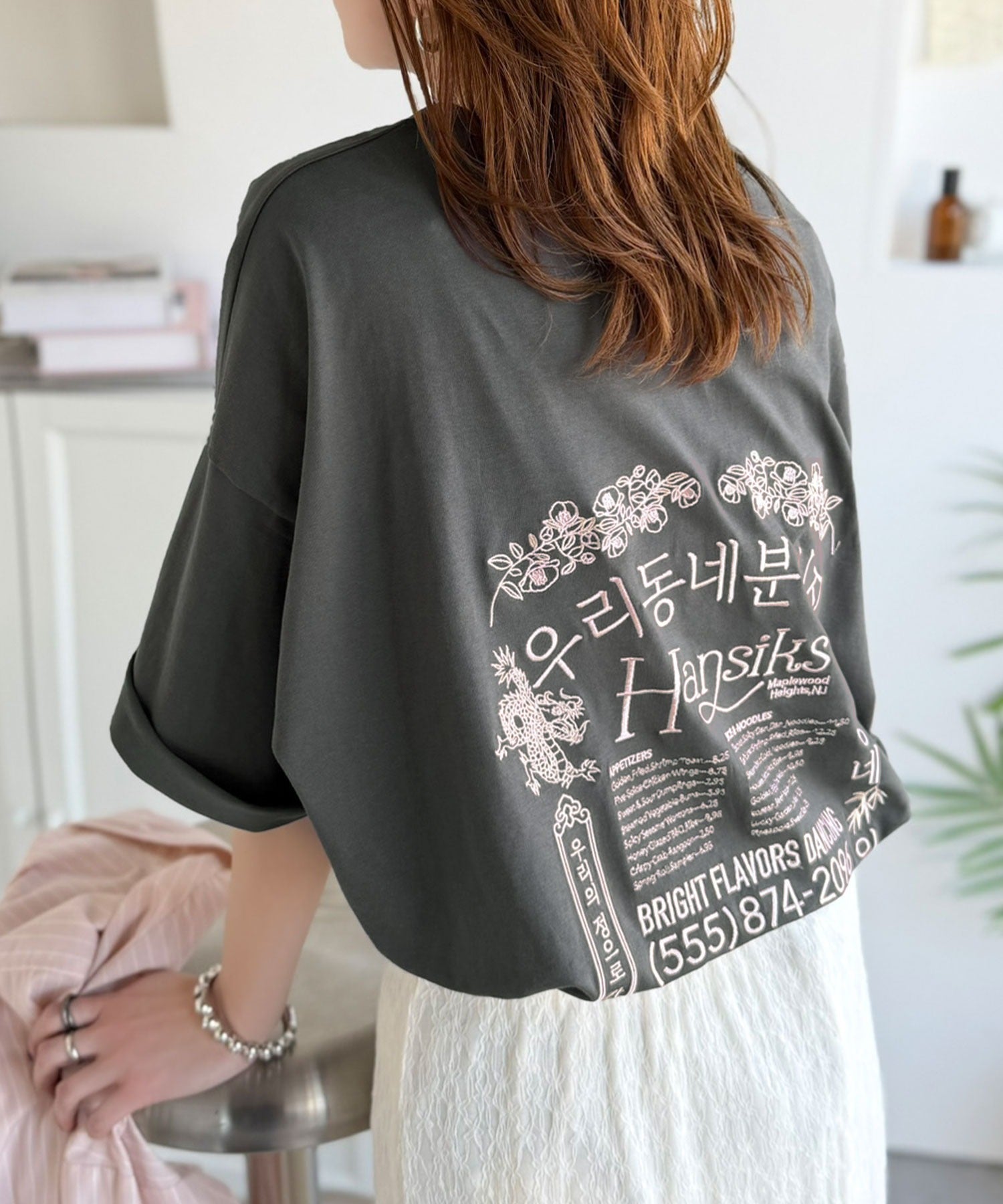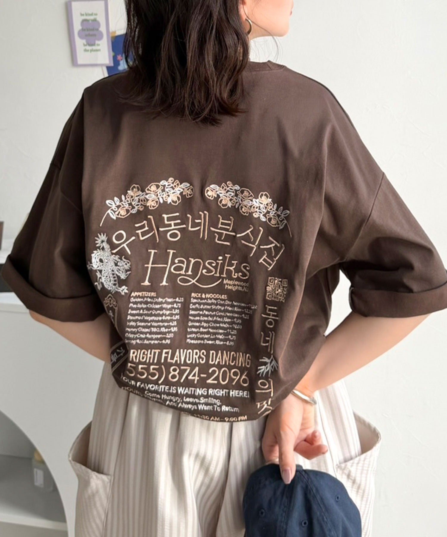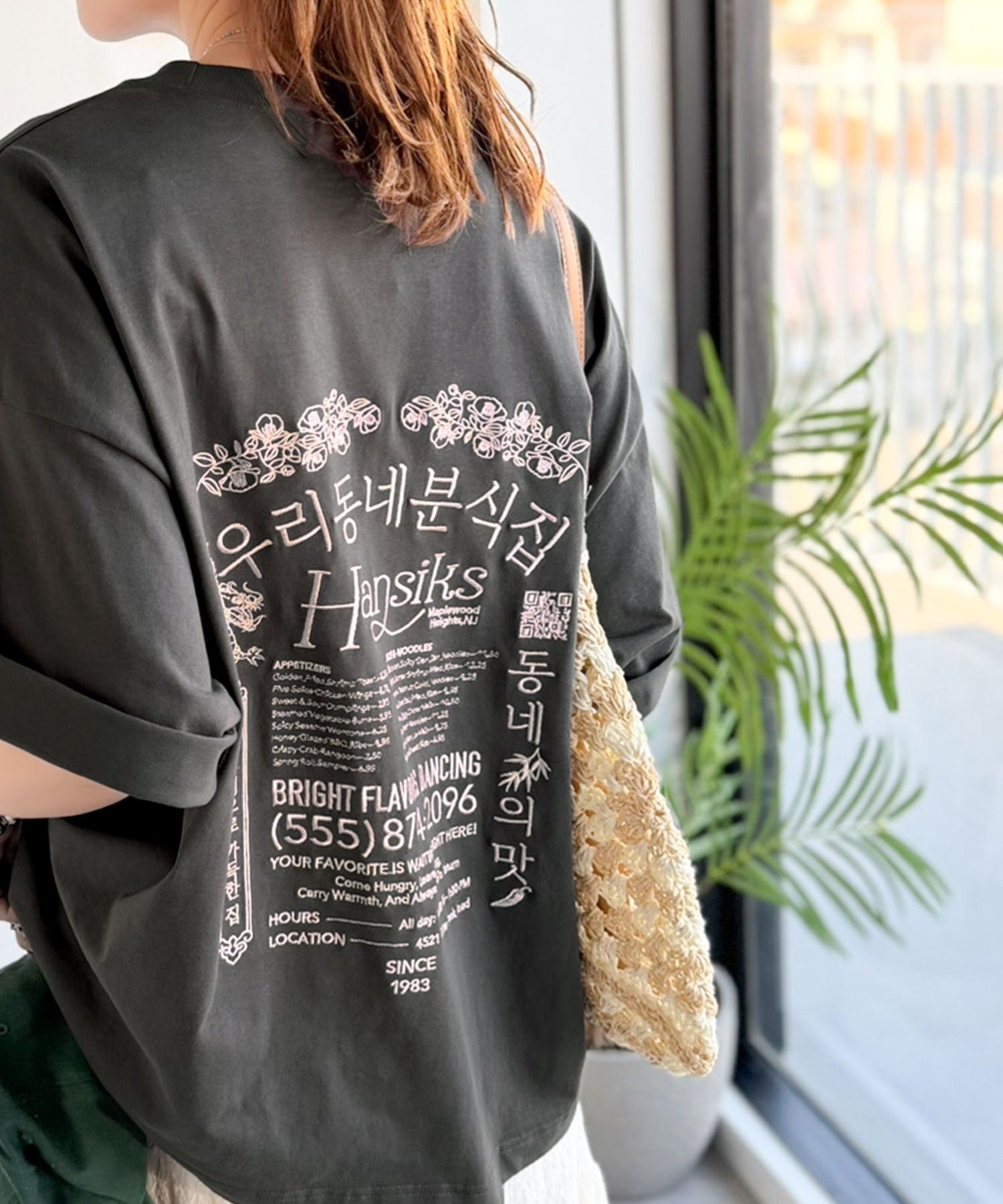 バックにはハングル刺繍グラフィックを施し、