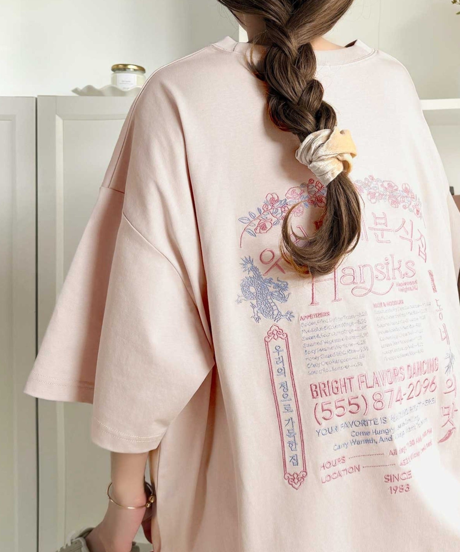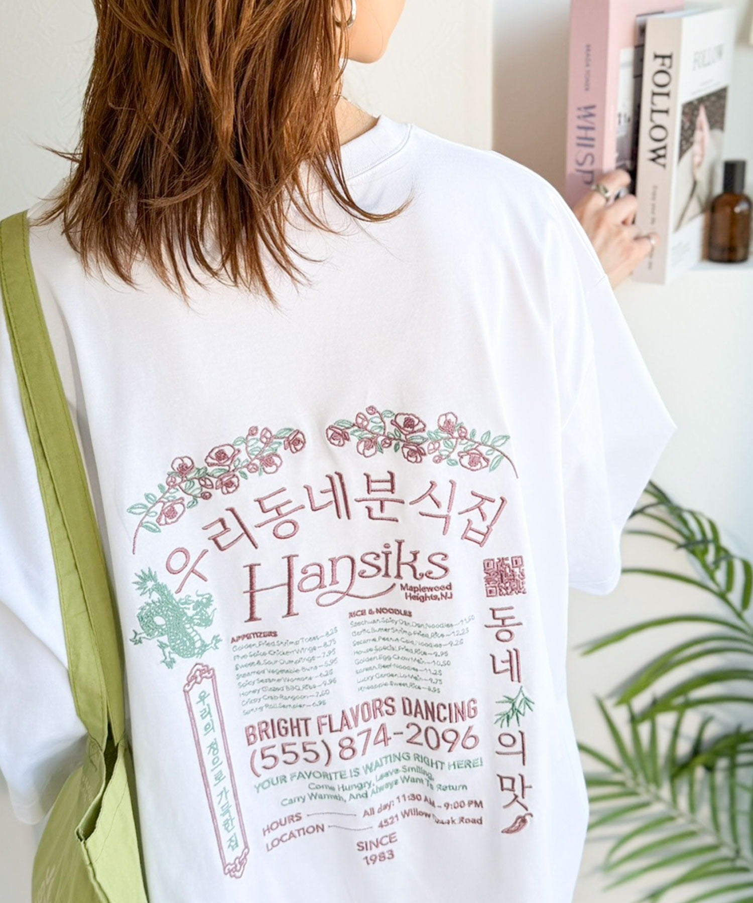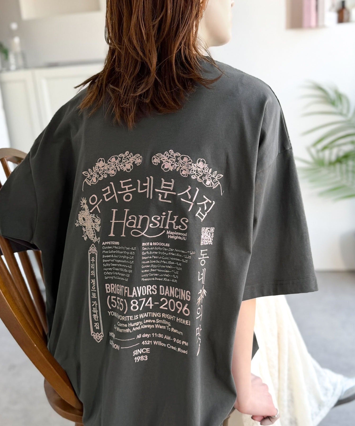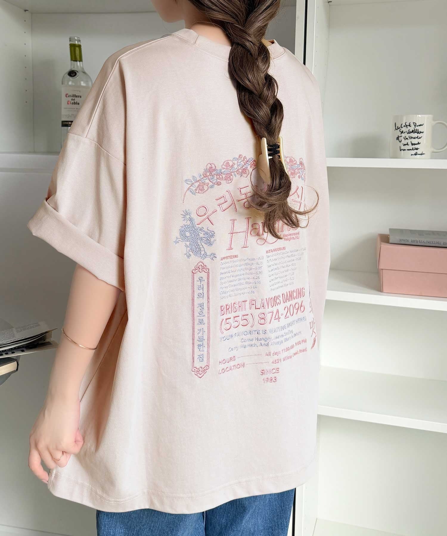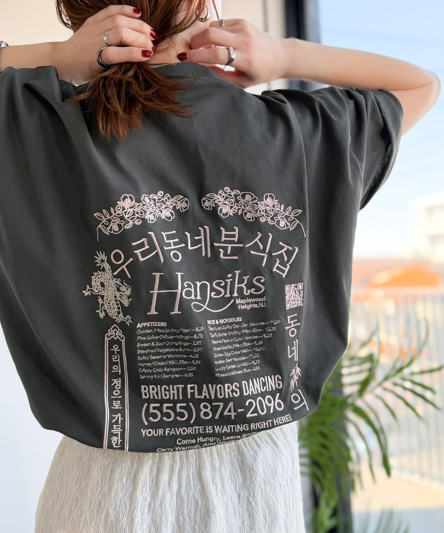 バックにはハングル刺繍グラフィックを施し、