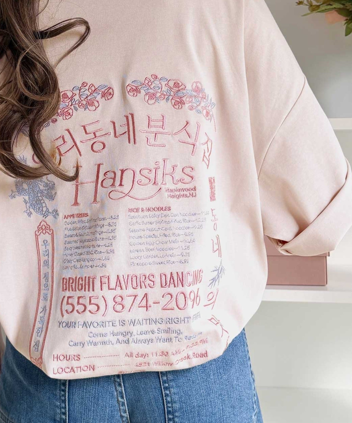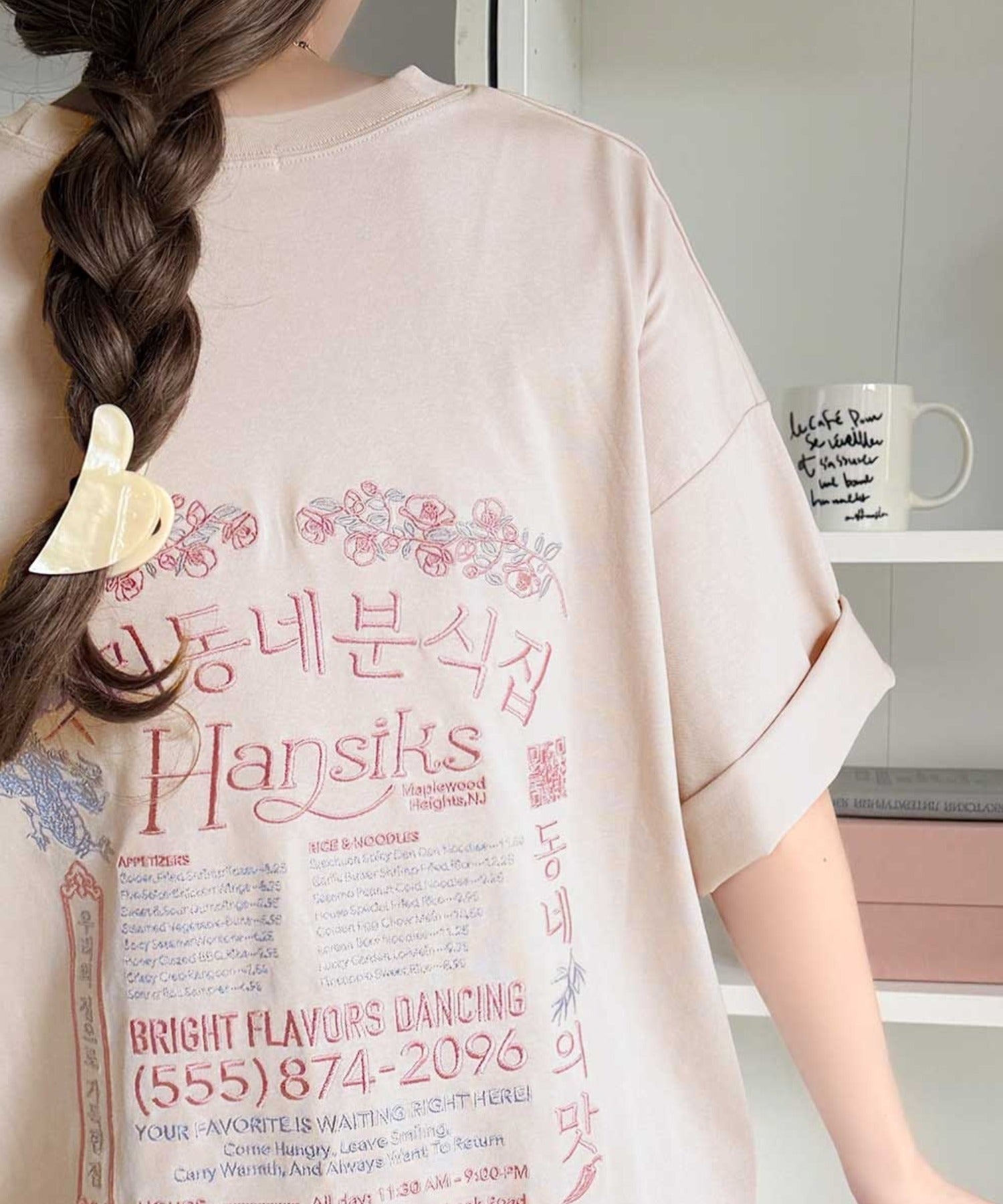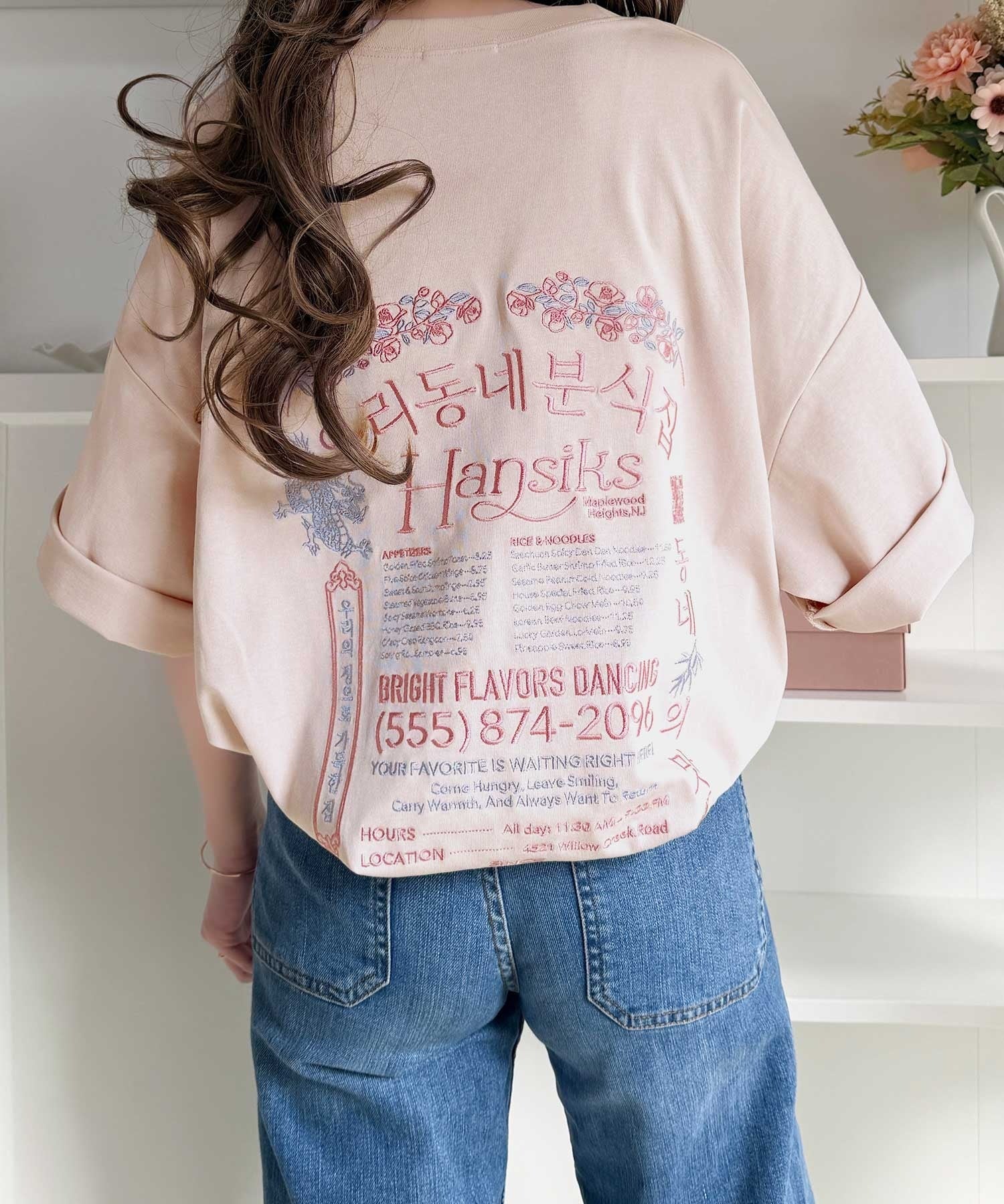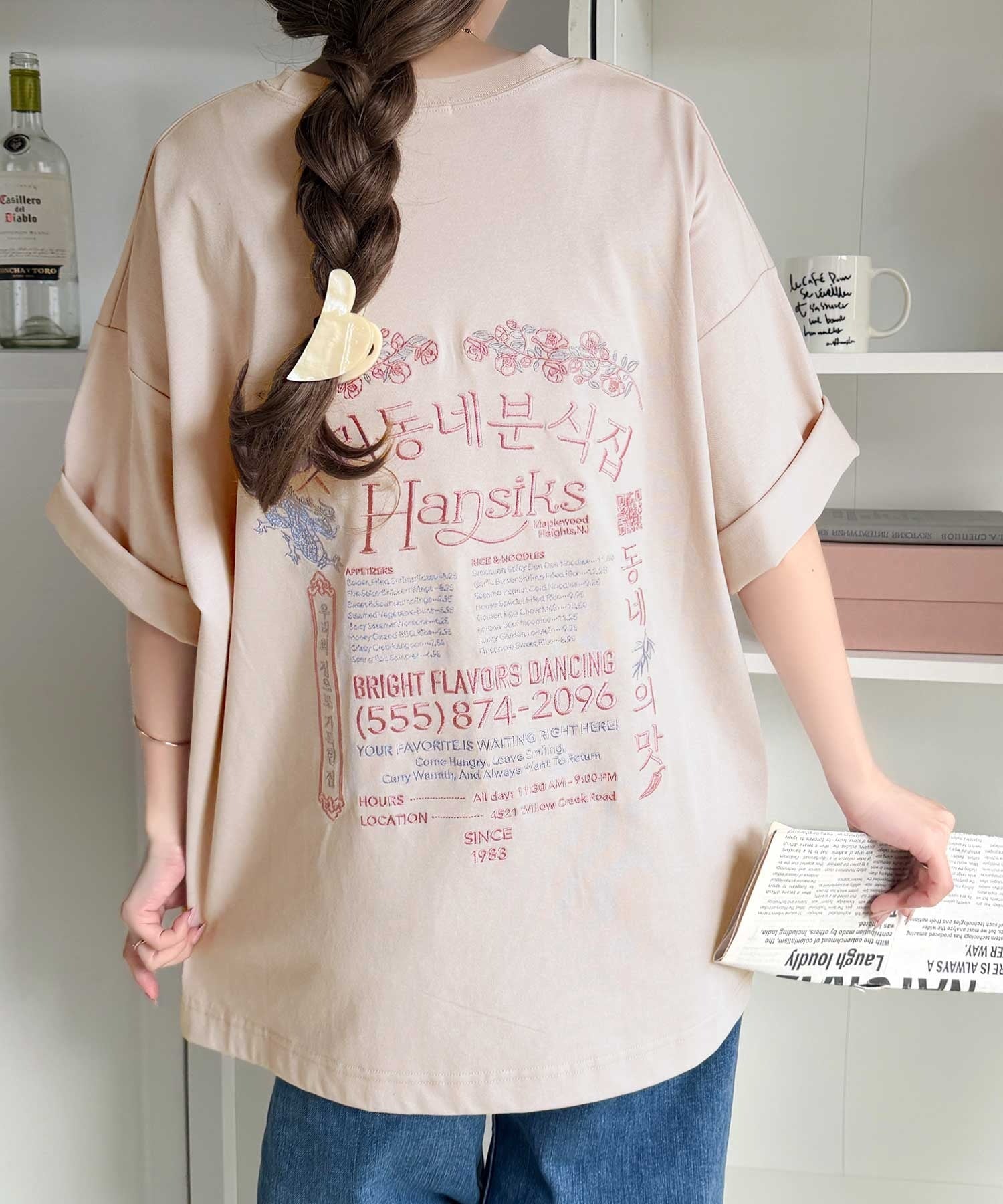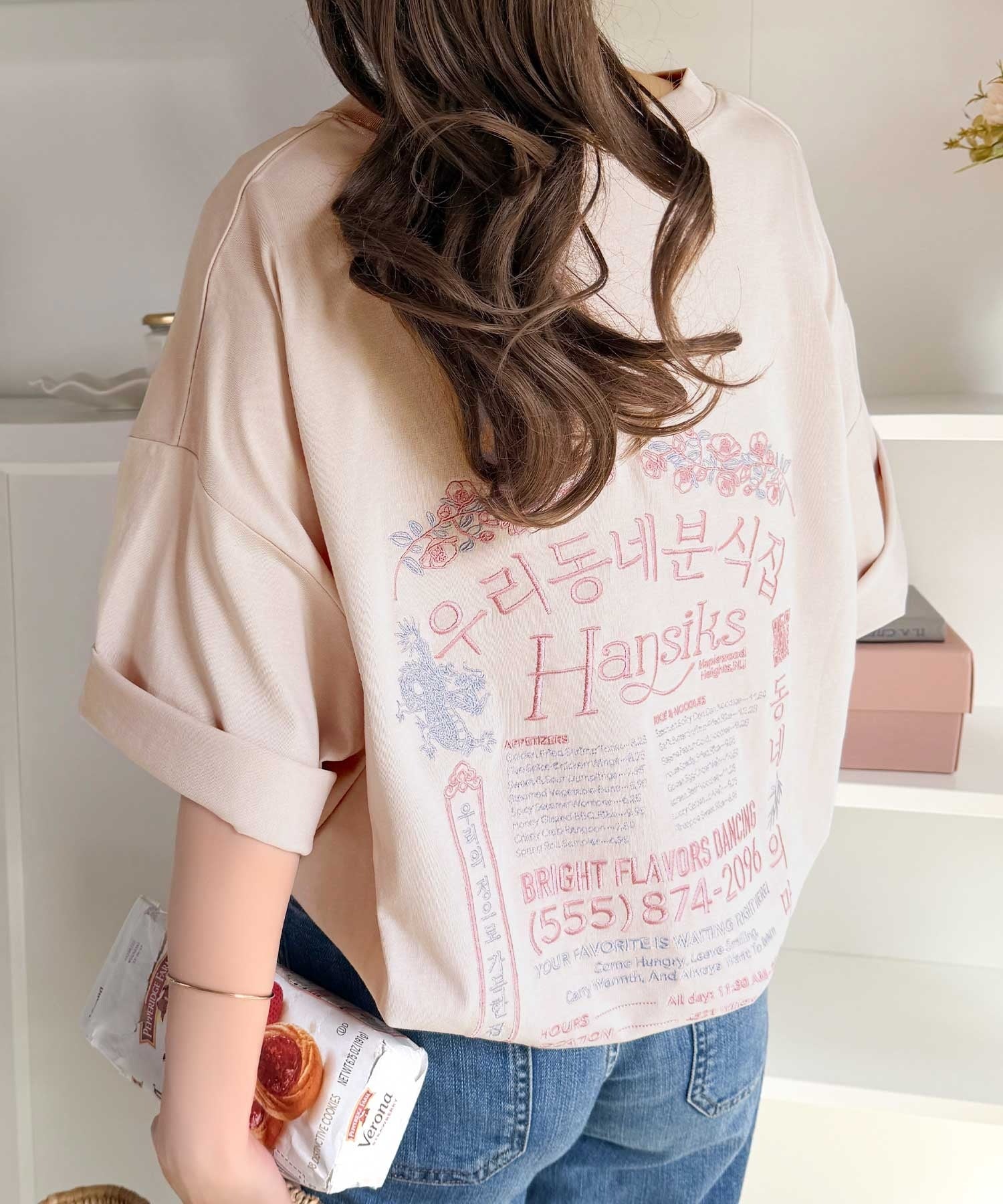 バックにはハングル刺繍グラフィックを施し、