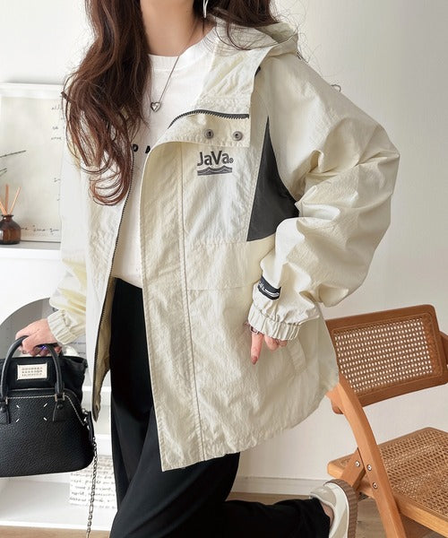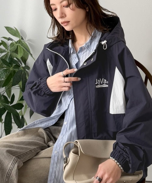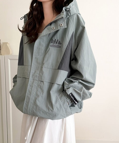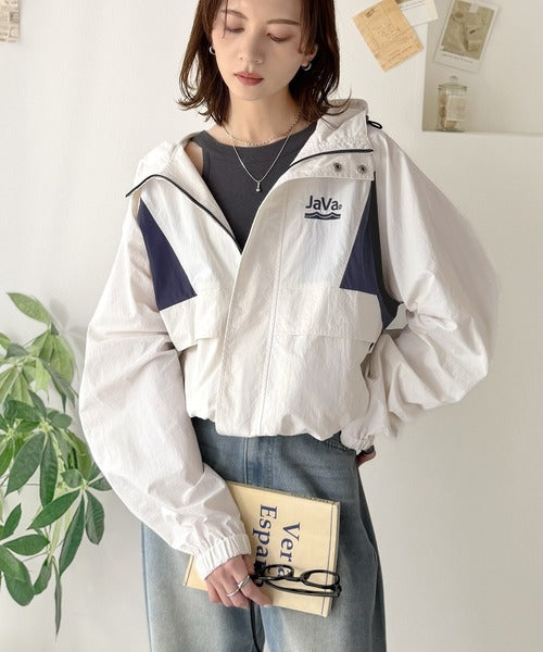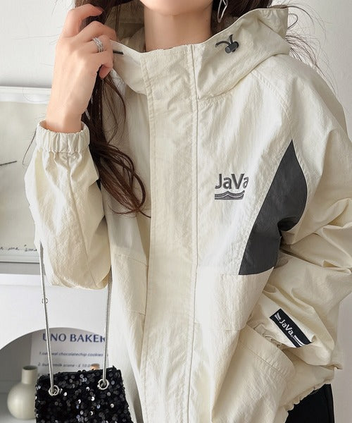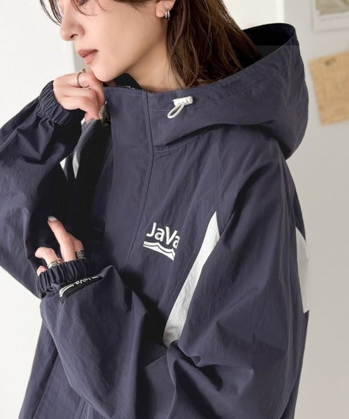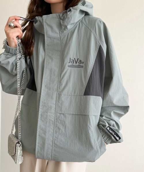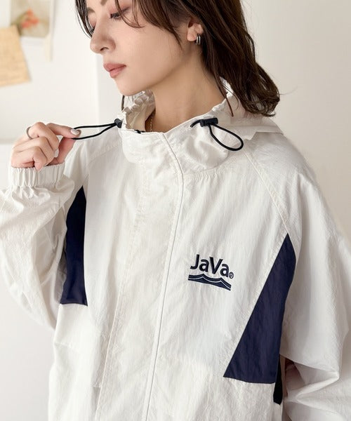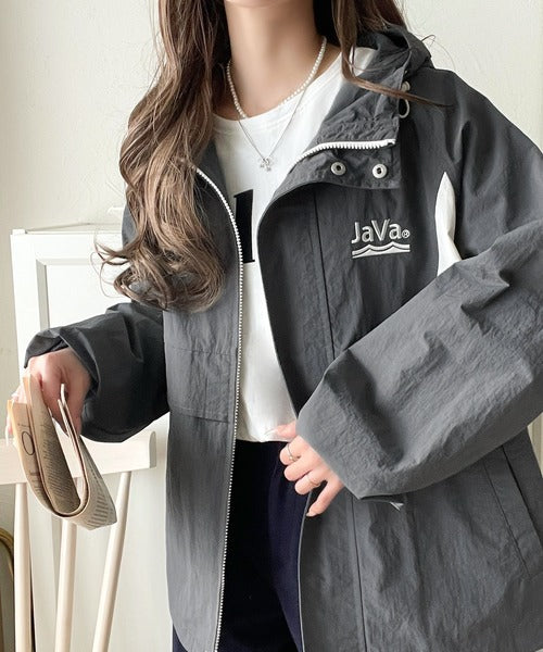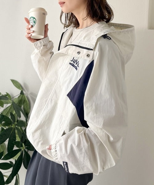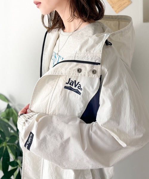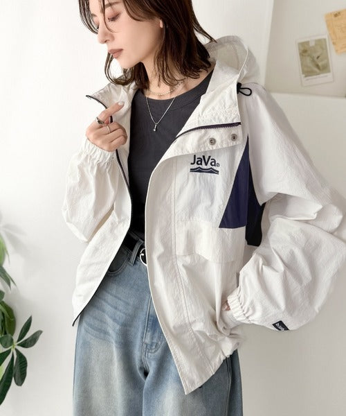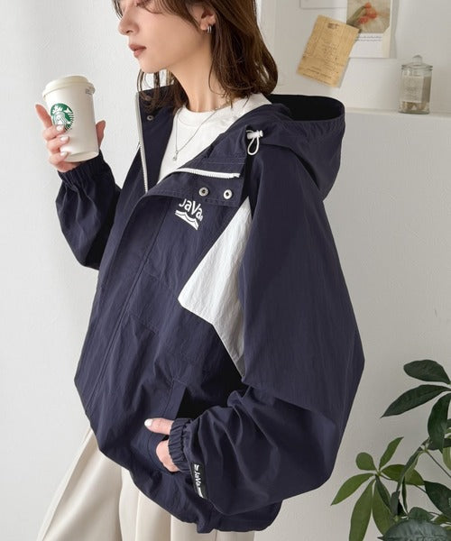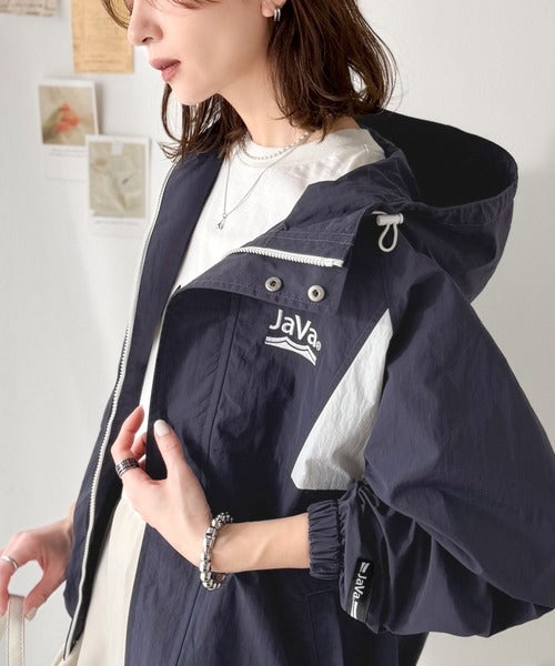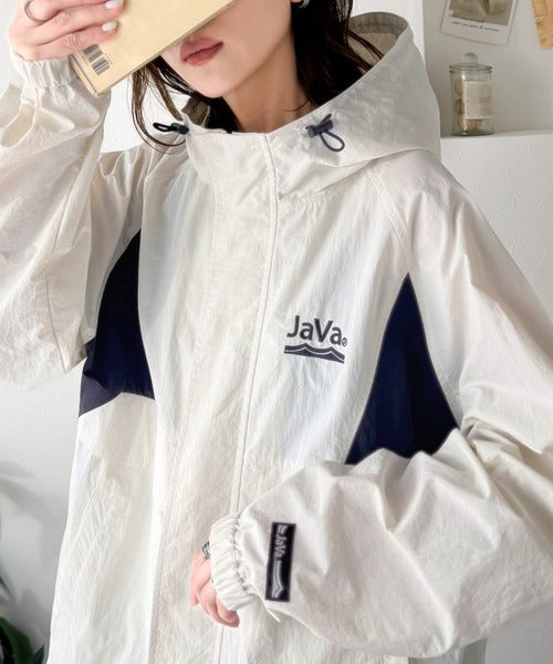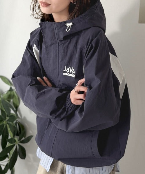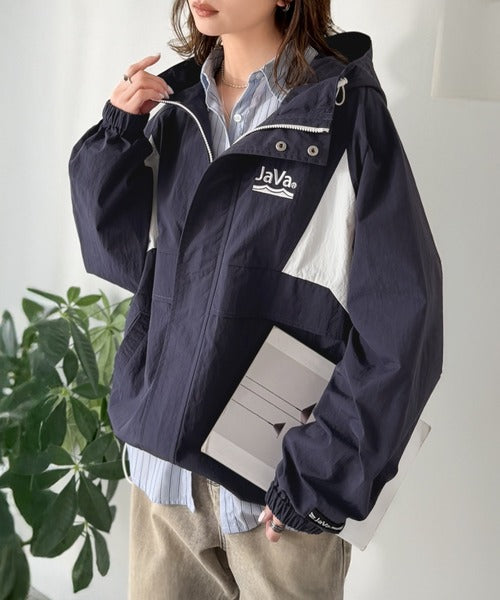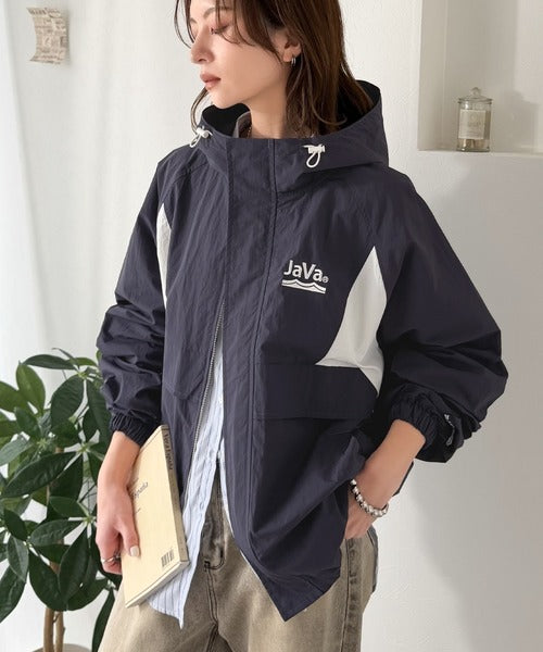 《JaVaジャバコラボ》軽やかに魅せる、スポーティモード。サイド配色切替ナイロン100%パーカー jv1265037