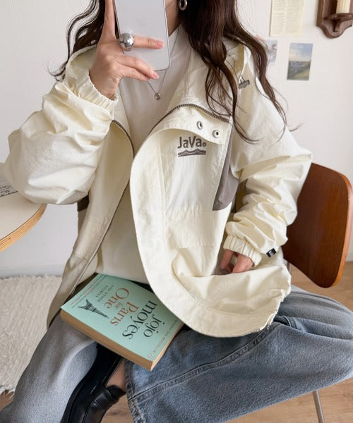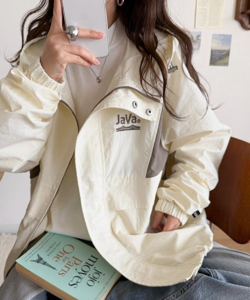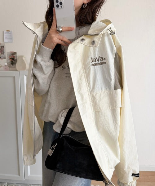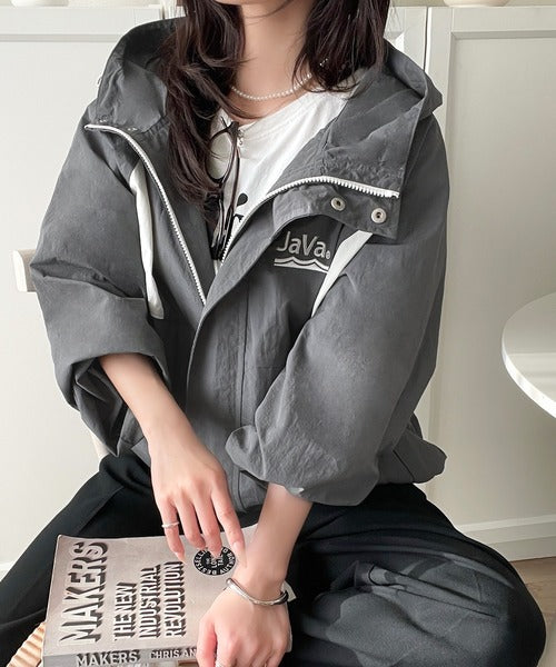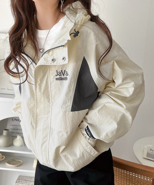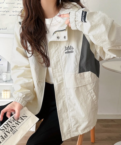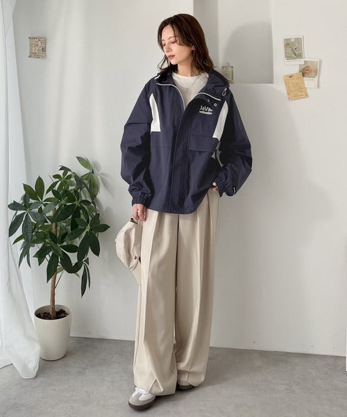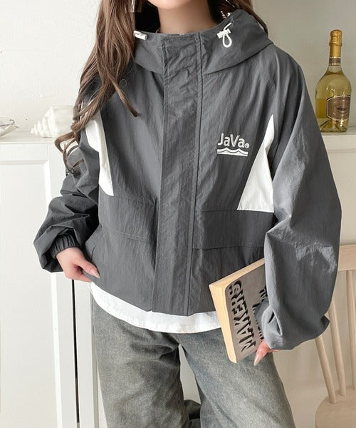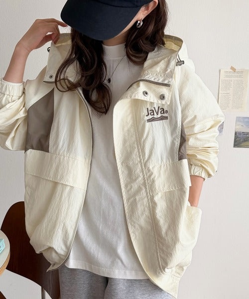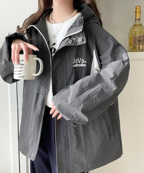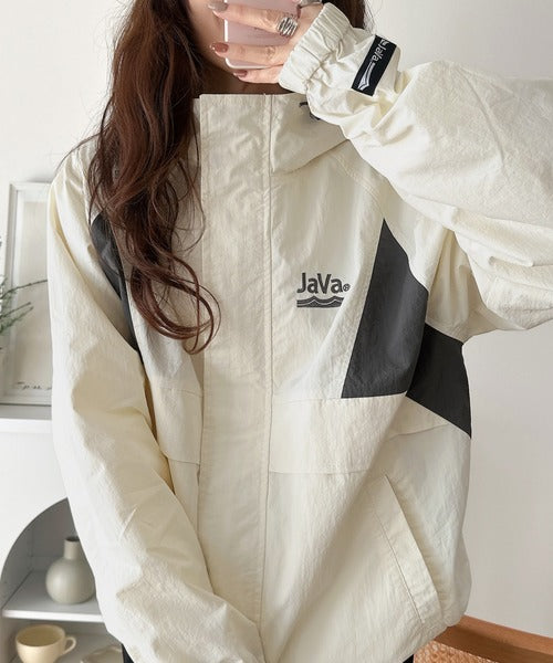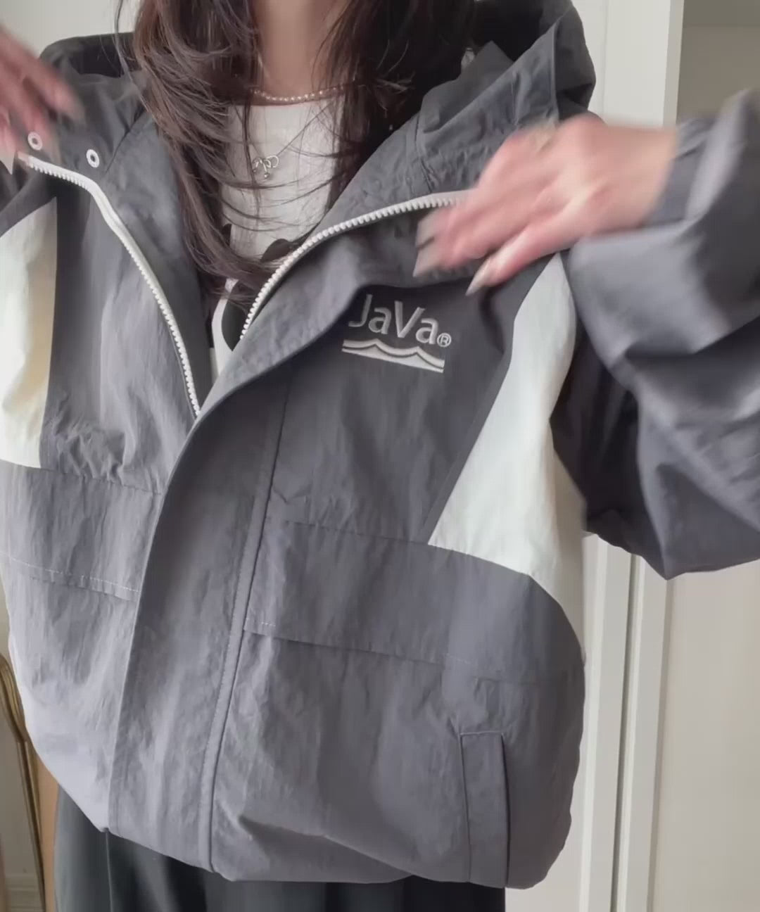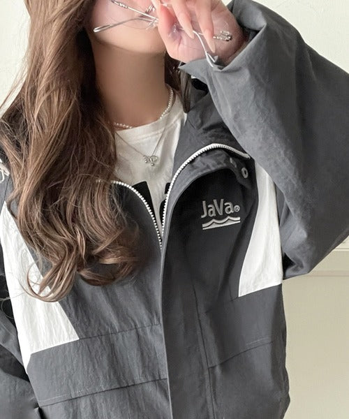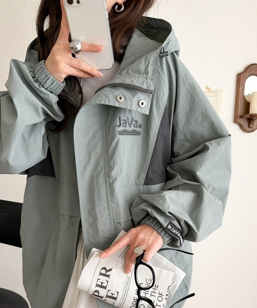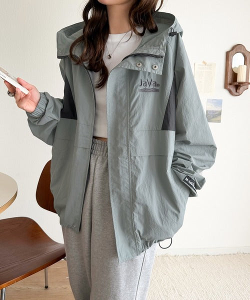 《JaVaジャバコラボ》軽やかに魅せる、スポーティモード。サイド配色切替ナイロン100%パーカー jv1265037