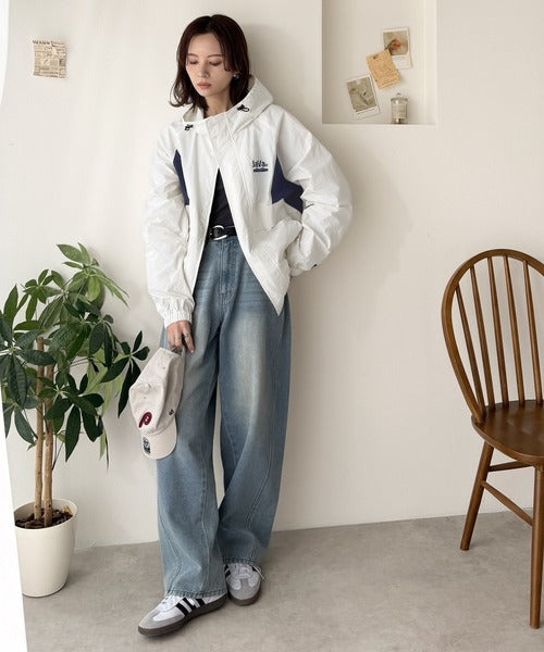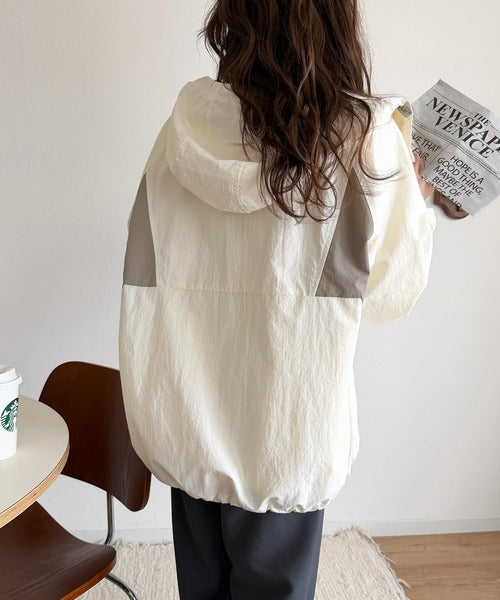 サイド配色が映える、大人の軽やかナイロンフーディ♪