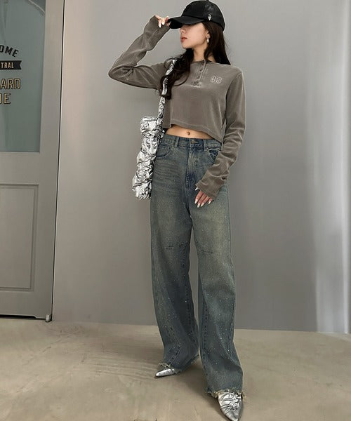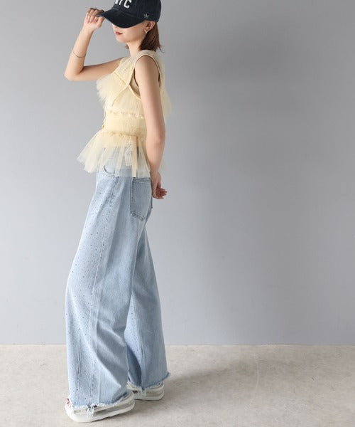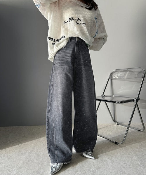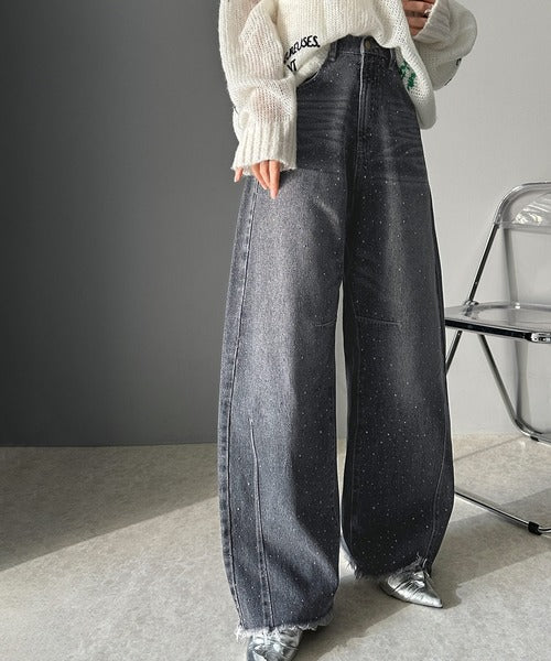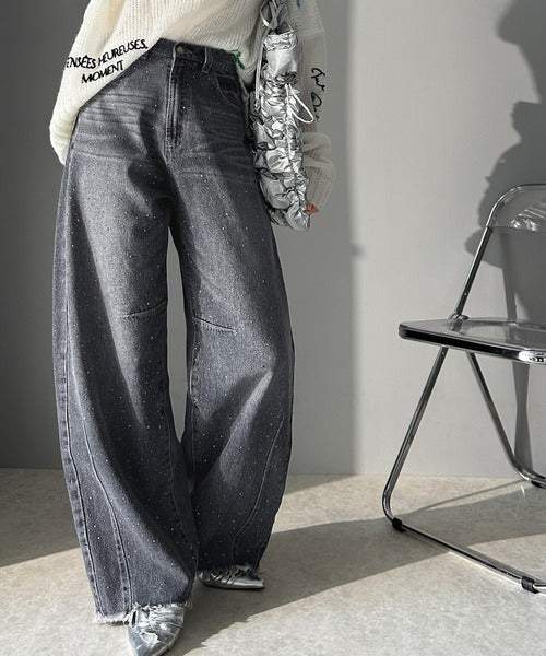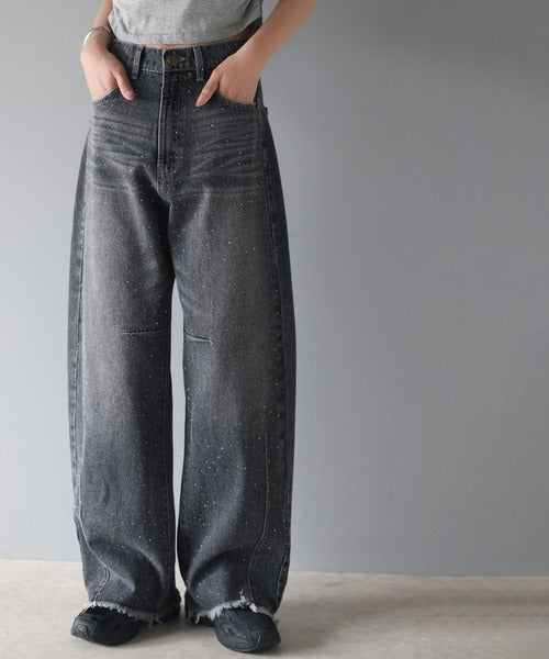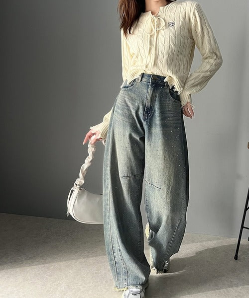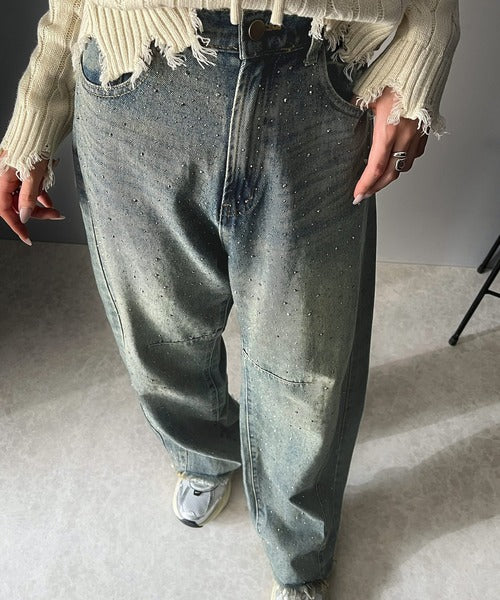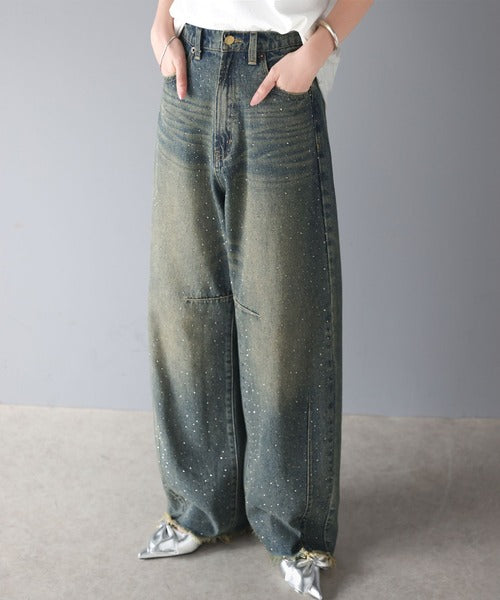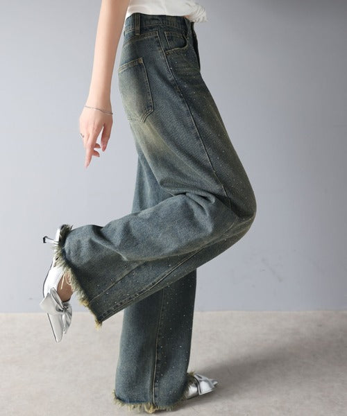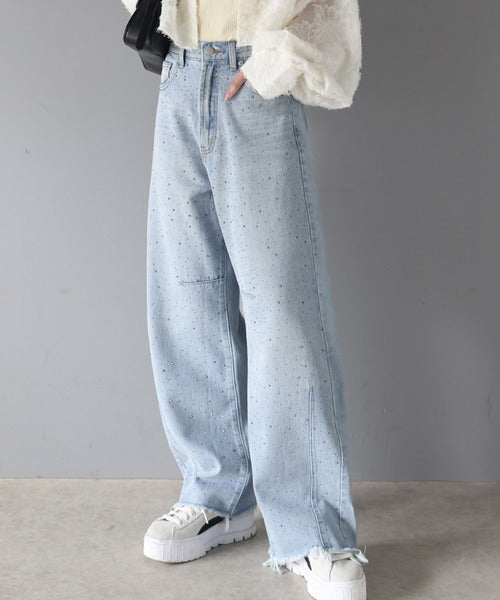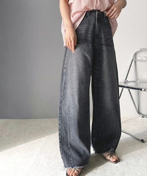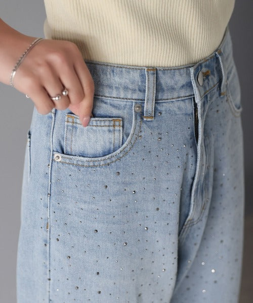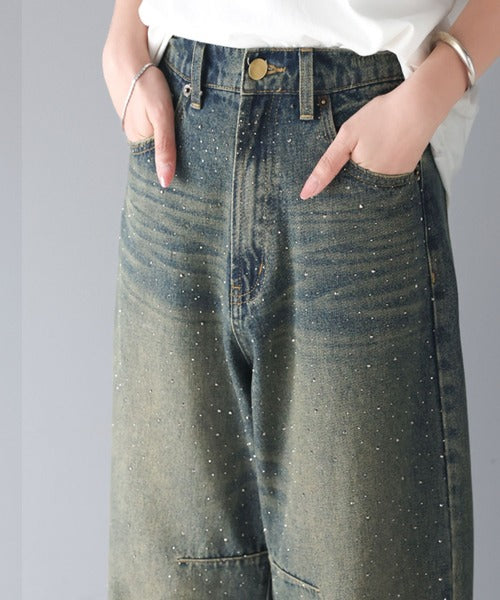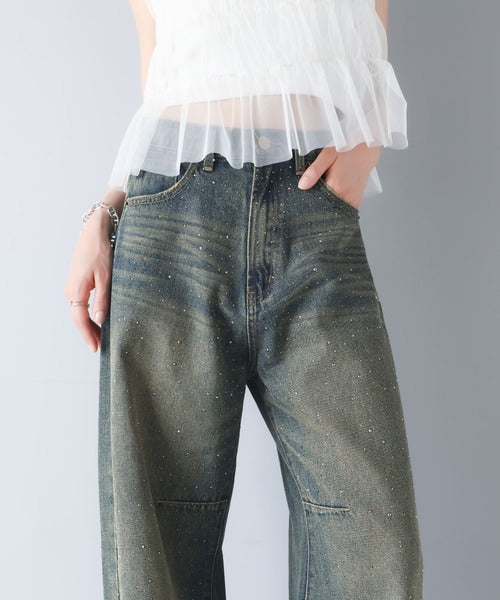 【mily bilet】甘辛のバランスが今年らしい。オーロラストーン付きヴィンテージライクカーブデニムパンツ mi0909003