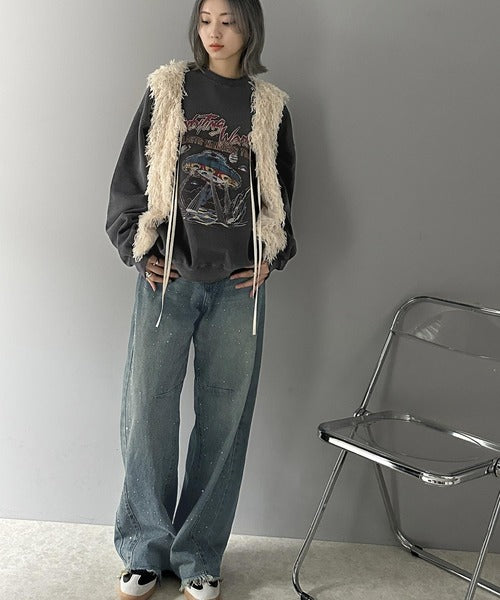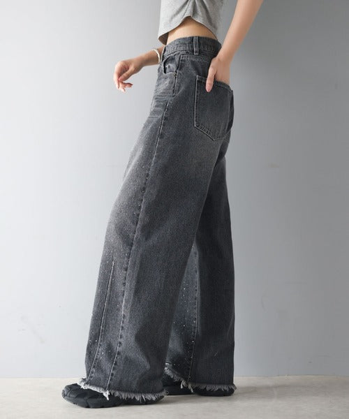 裾のフリンジや穿き古したようなウォッシュ加工など
