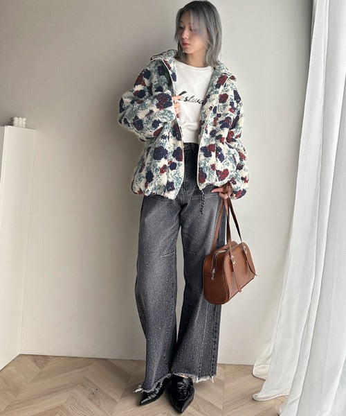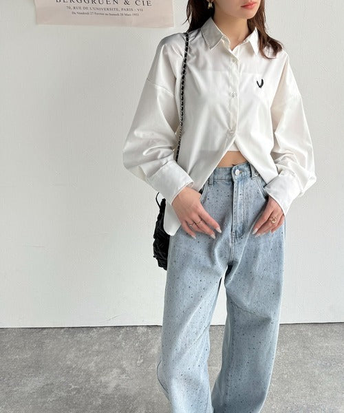 メンズライクなデニムと女性らしいモチーフのバランスがお洒落度を高めます。