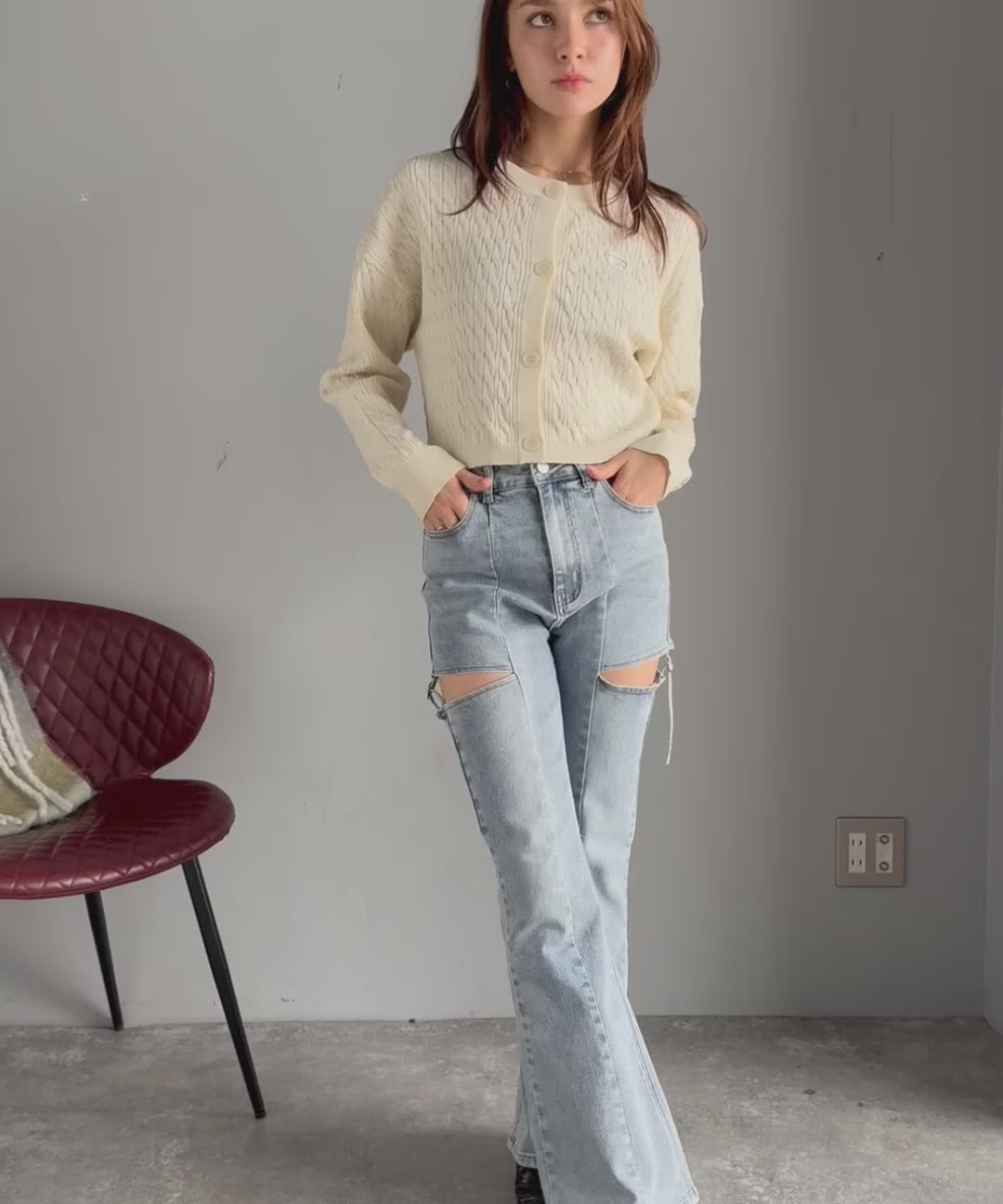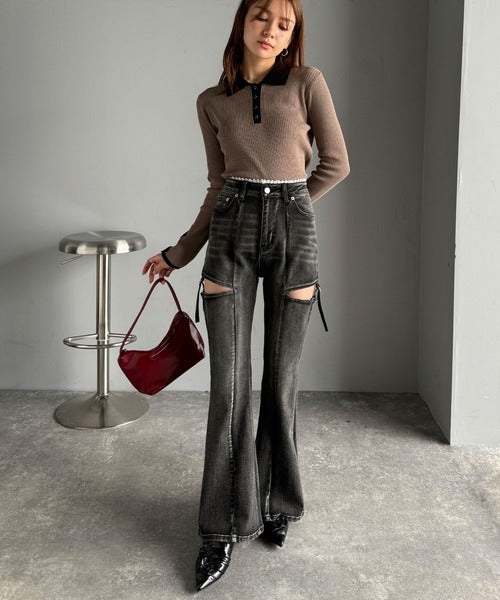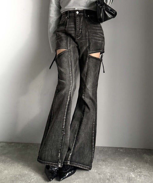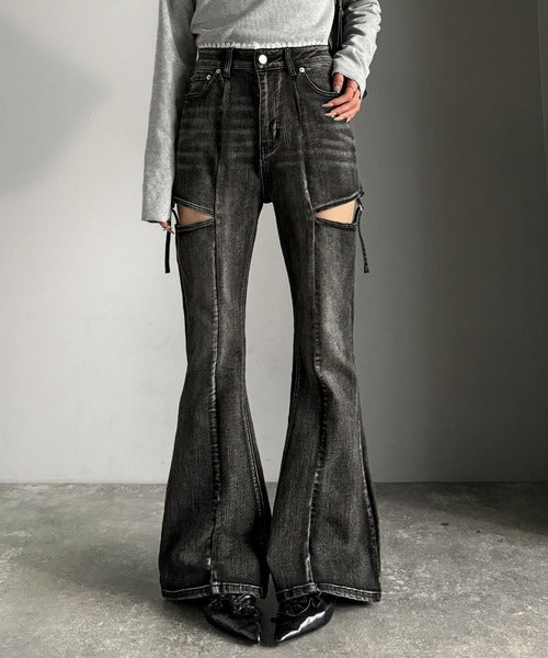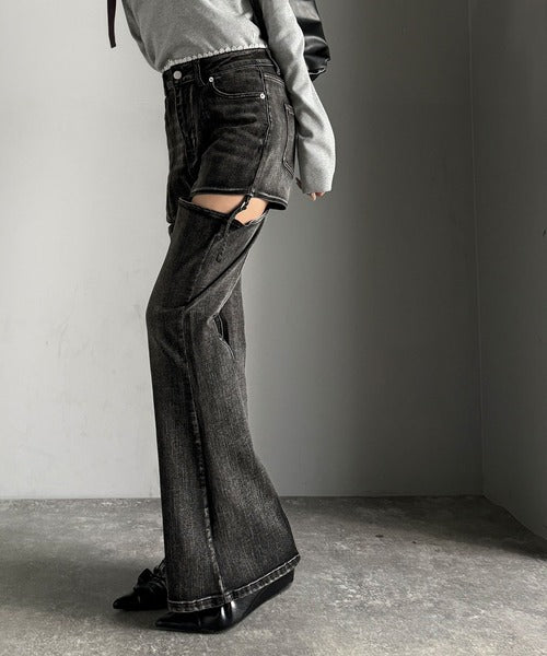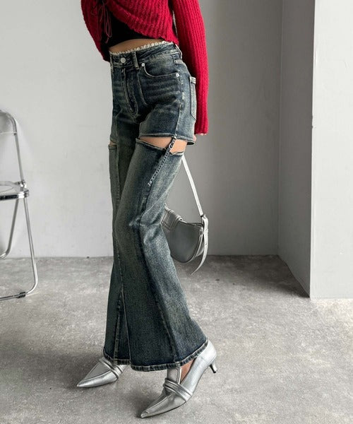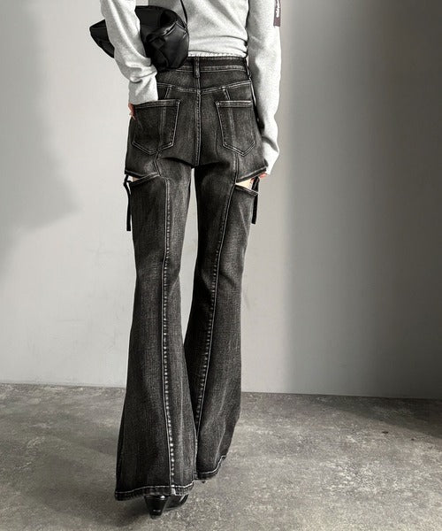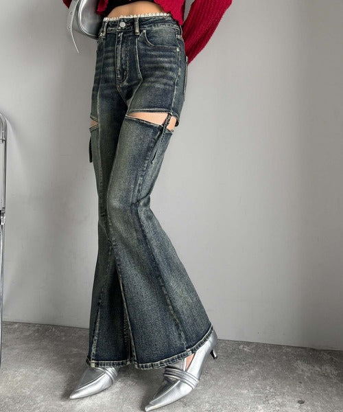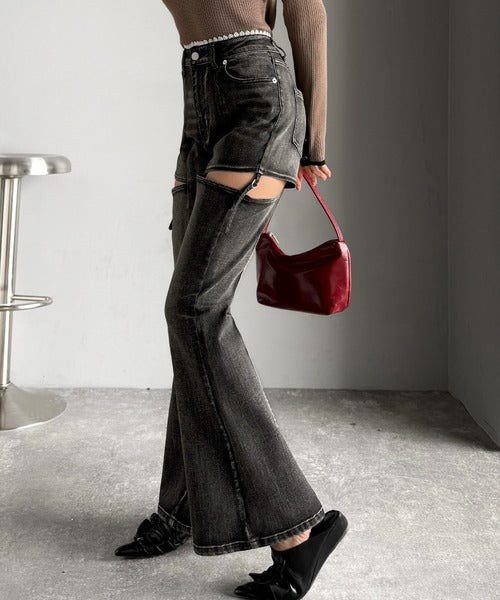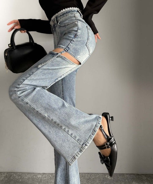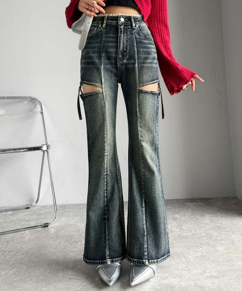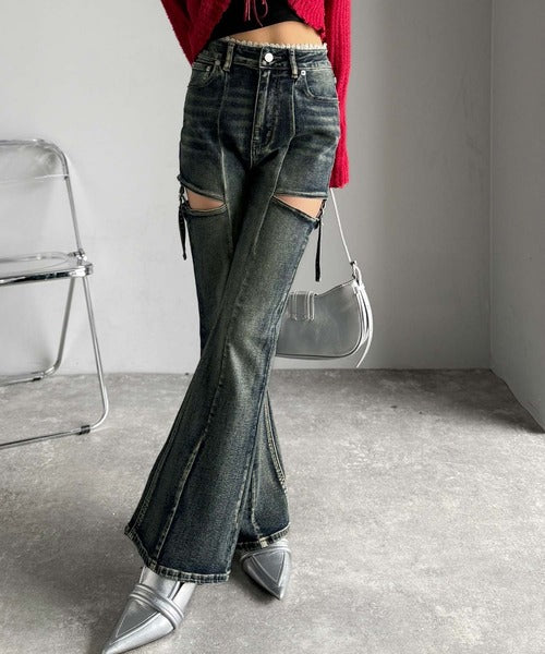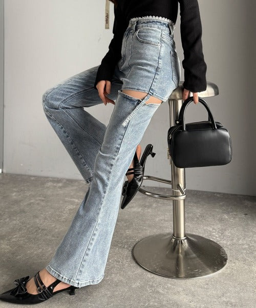 フレアシルエットが脚長視覚効果を実現する洗練デニム。