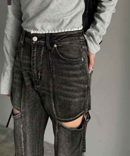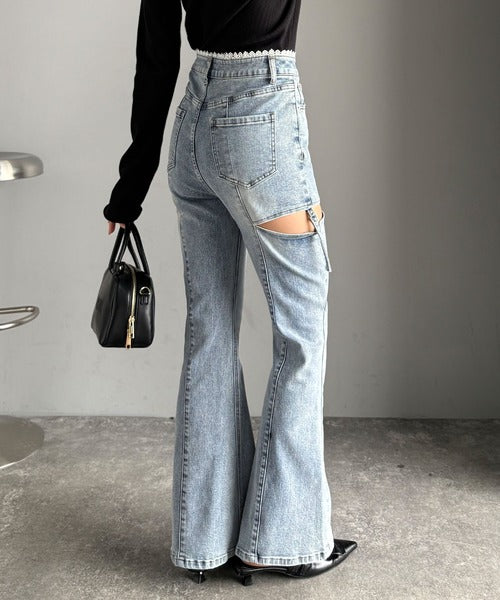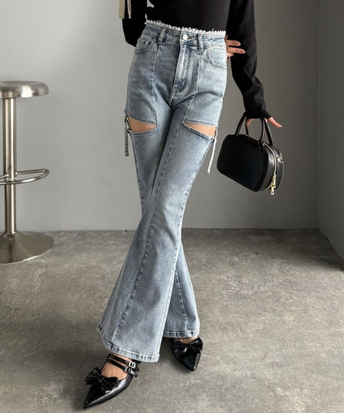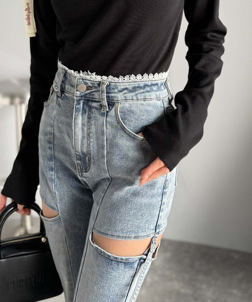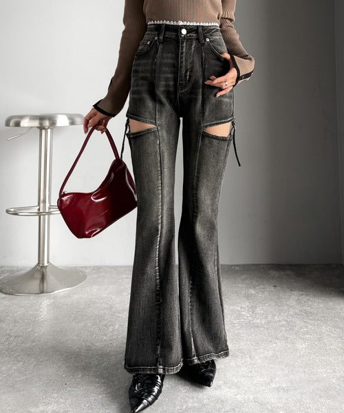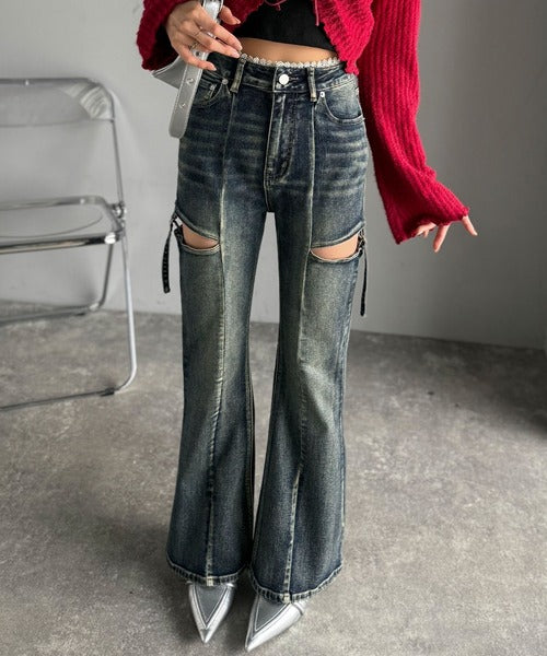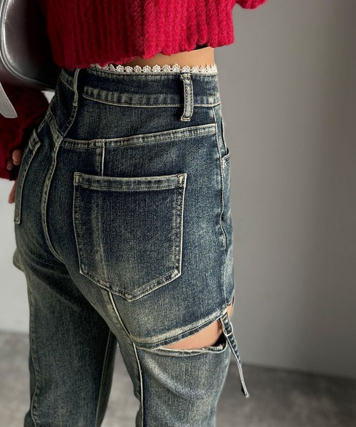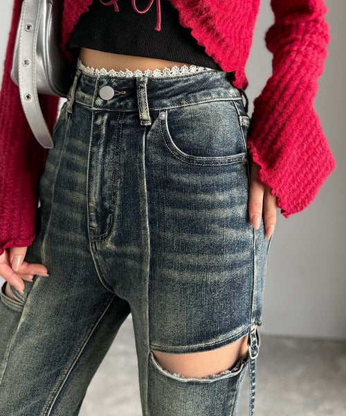 ヘルシーな肌見せカットアウト入りの、トレンドを抑えたデニムパンツ!