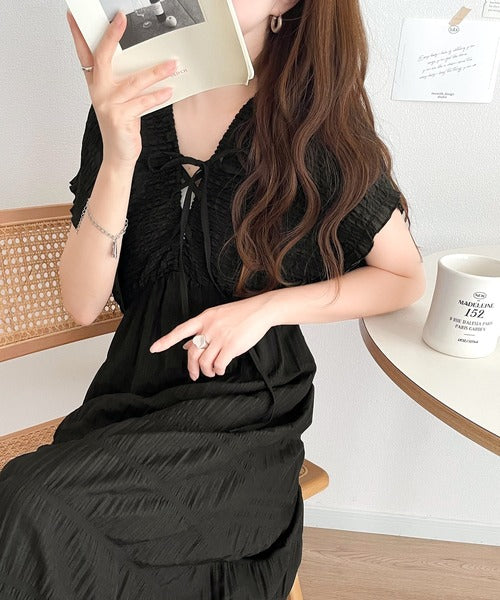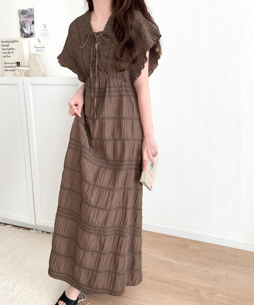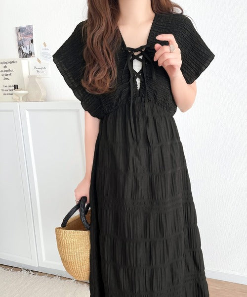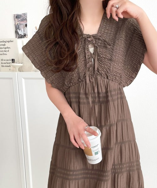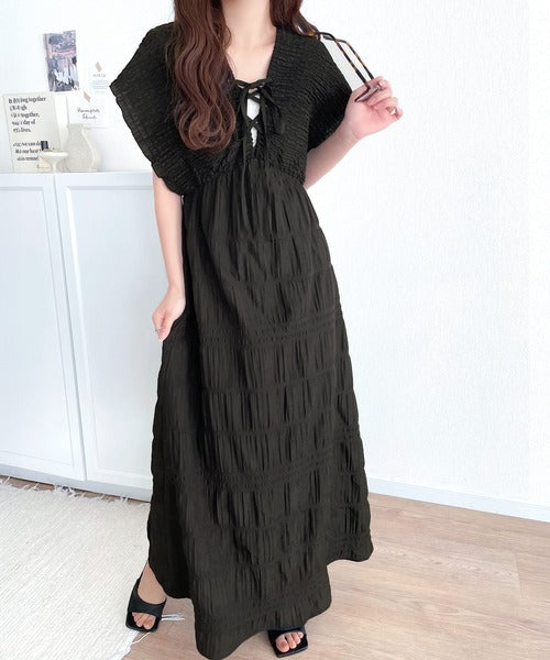 軽やかでふんわりとした表情感を持つ素材で1枚で華やかにキマるワンピース。