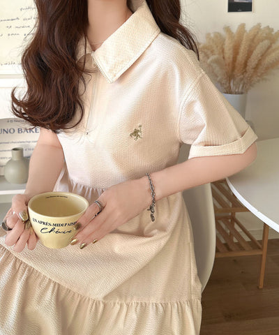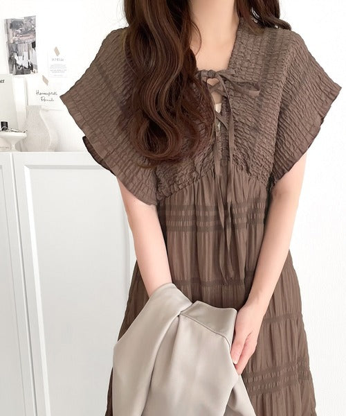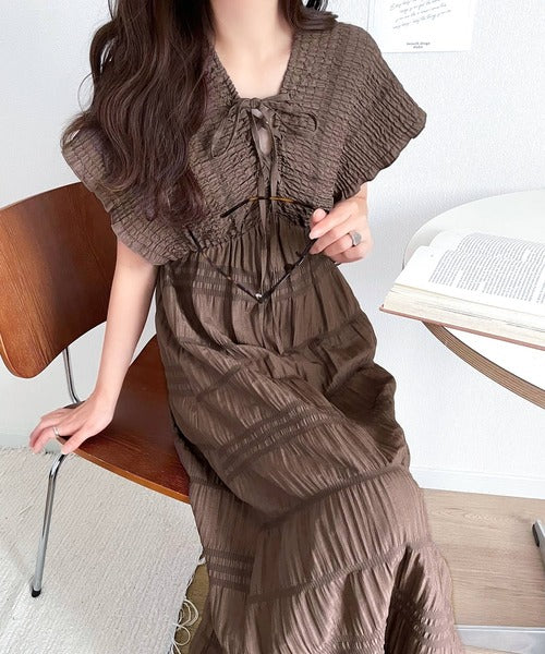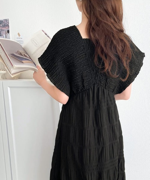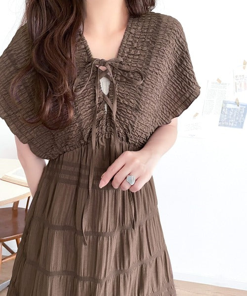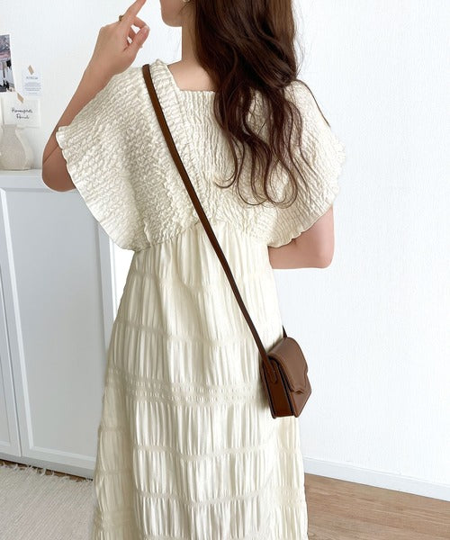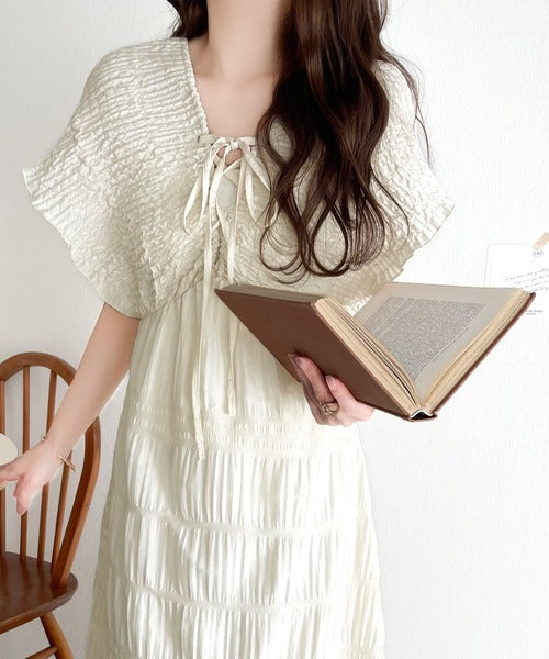 ケープのようなフレンチスリーブがフェミニンなアクセントに。