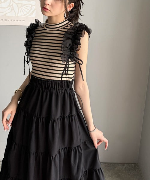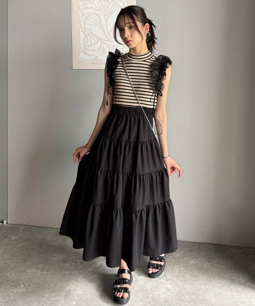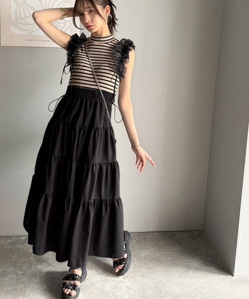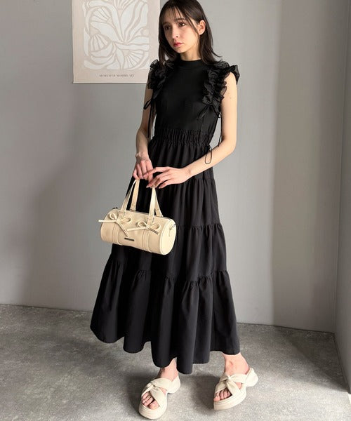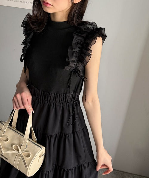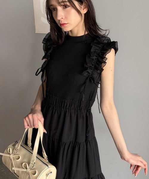 トレンド感のある肩フリルが印象的なドッキングワンピース♪