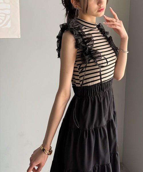 【mily bilet】一枚で大人可愛く決まる。フリル切り替えドッキングワンピース(ノースリーブ) mi1019091