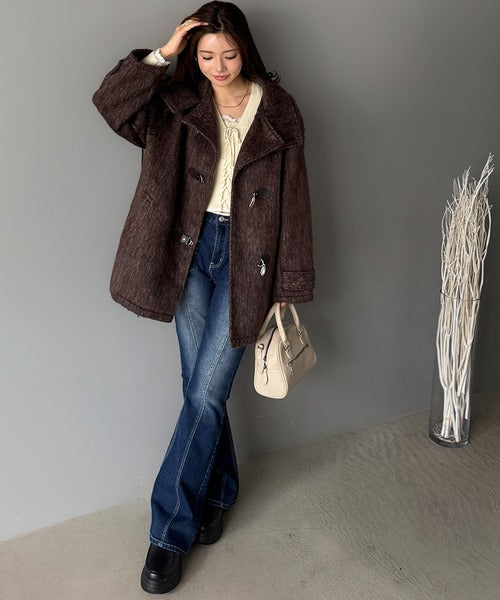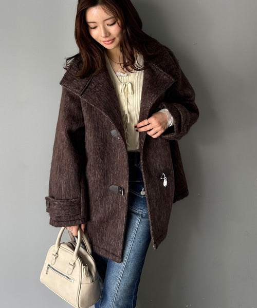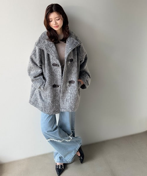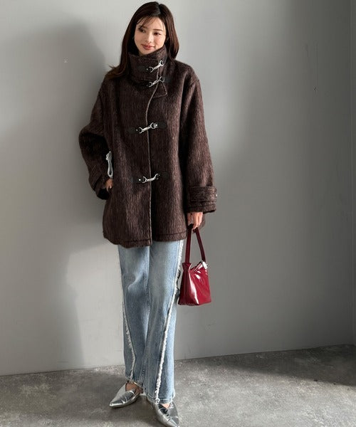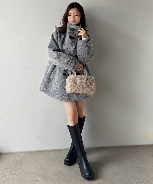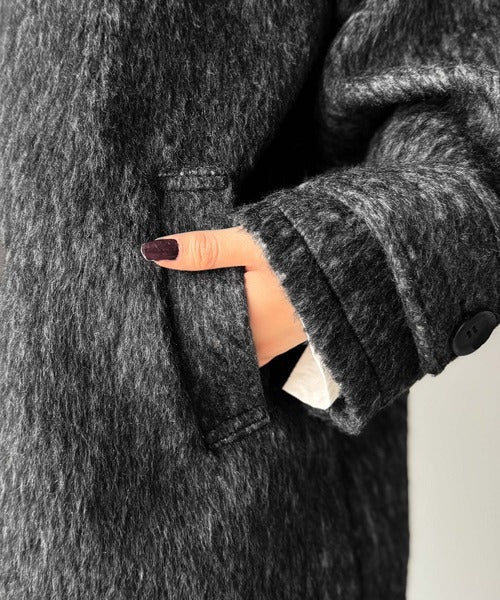 羽毛のように軽やかで柔らかなシャギー素材を贅沢に使用した、季節感たっぷりのコートです。