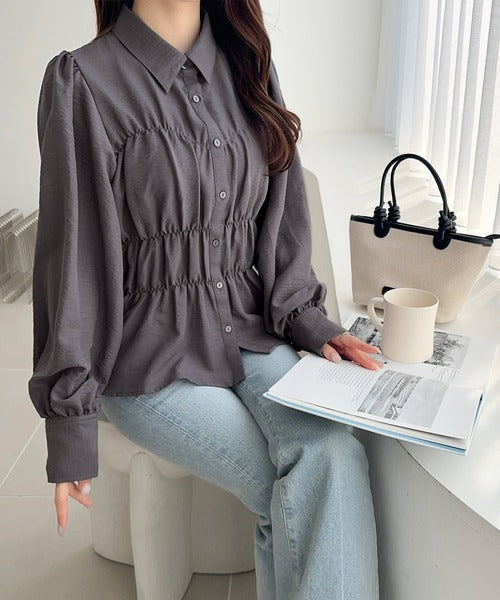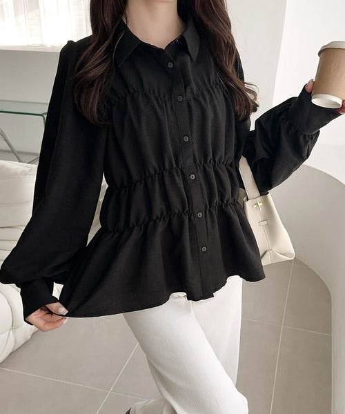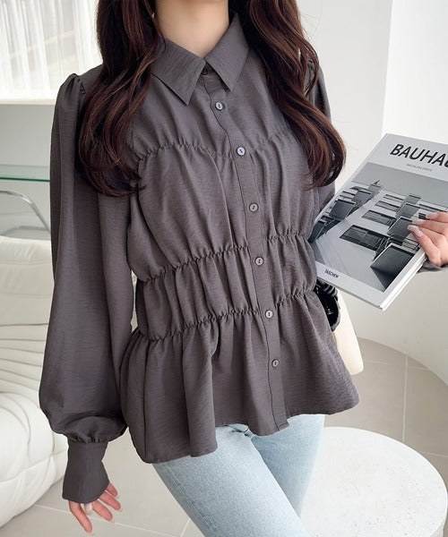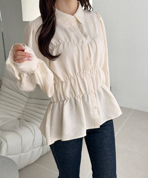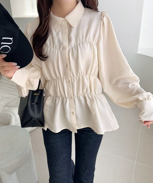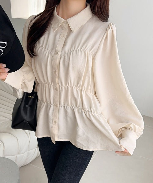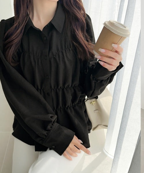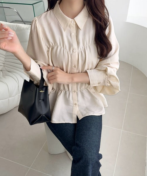 1枚で大人の甘さを引き出すシャーリングブラウス。