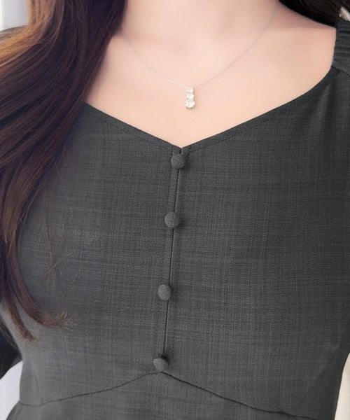 胸元の切替ラインが自然にウエスト位置を高く見せ、